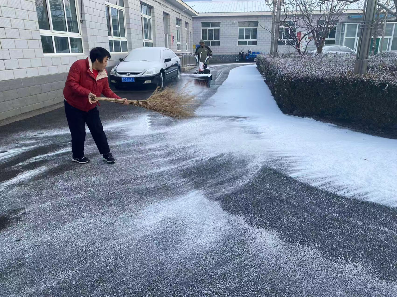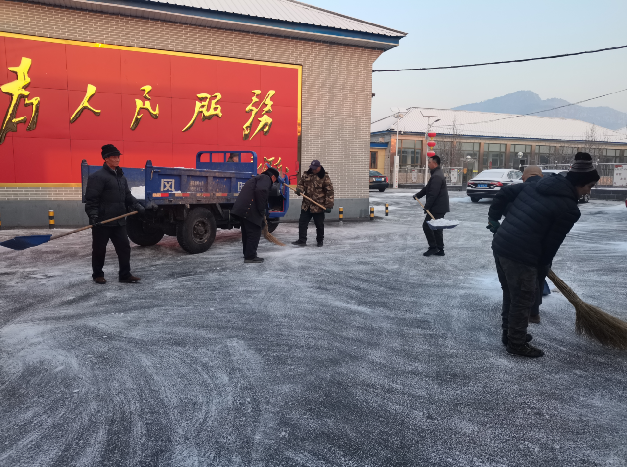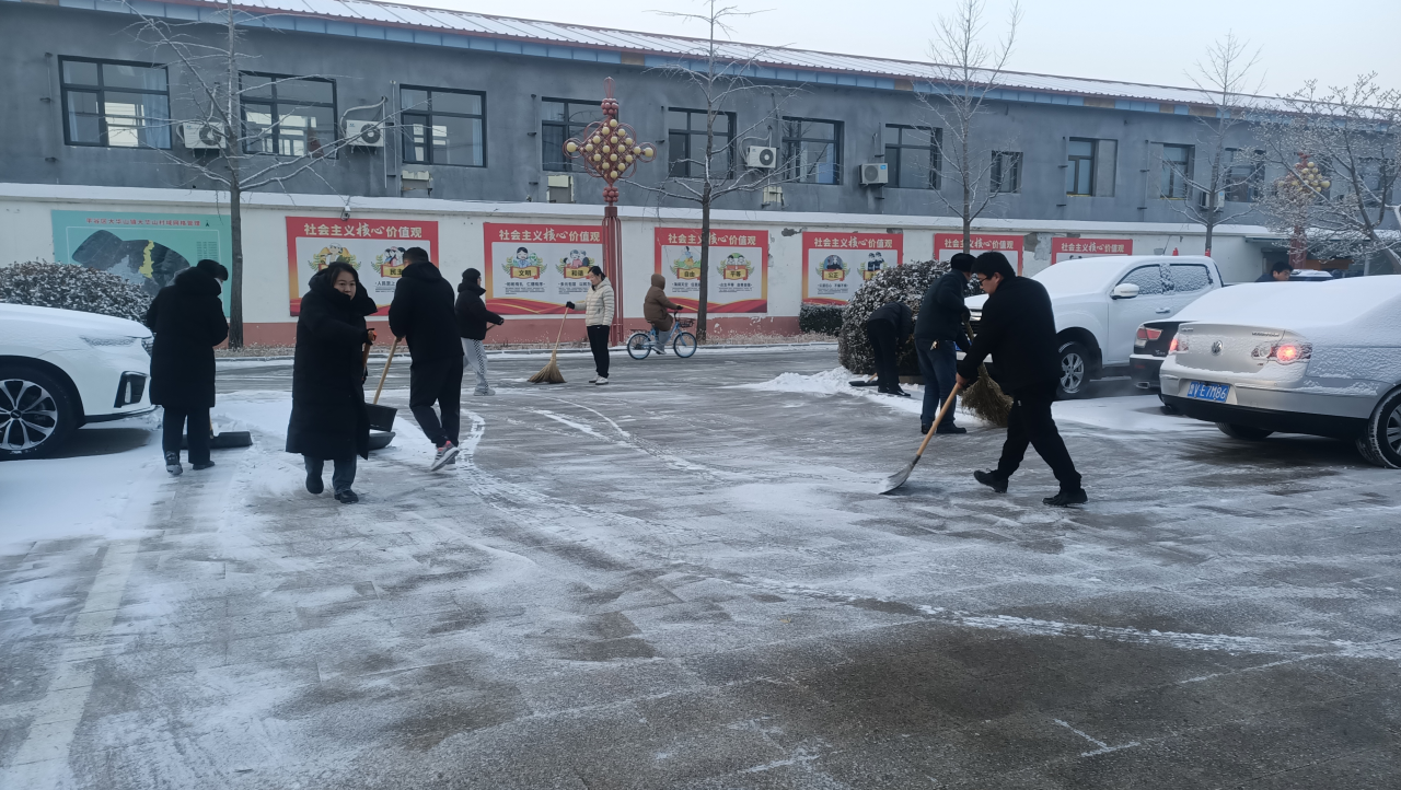全镇上下坚持“以人民为中心”,强化统筹部署,党员干部带头冲锋,保洁员、志愿者、热心群众等多方力量积极参与,形成了扫雪铲冰的强大合力。此次行动聚焦重点路段、村内主次干道、公共场所、独居老人及困难群众门前屋后等关键区域,确保清雪无死角、保障全覆盖。