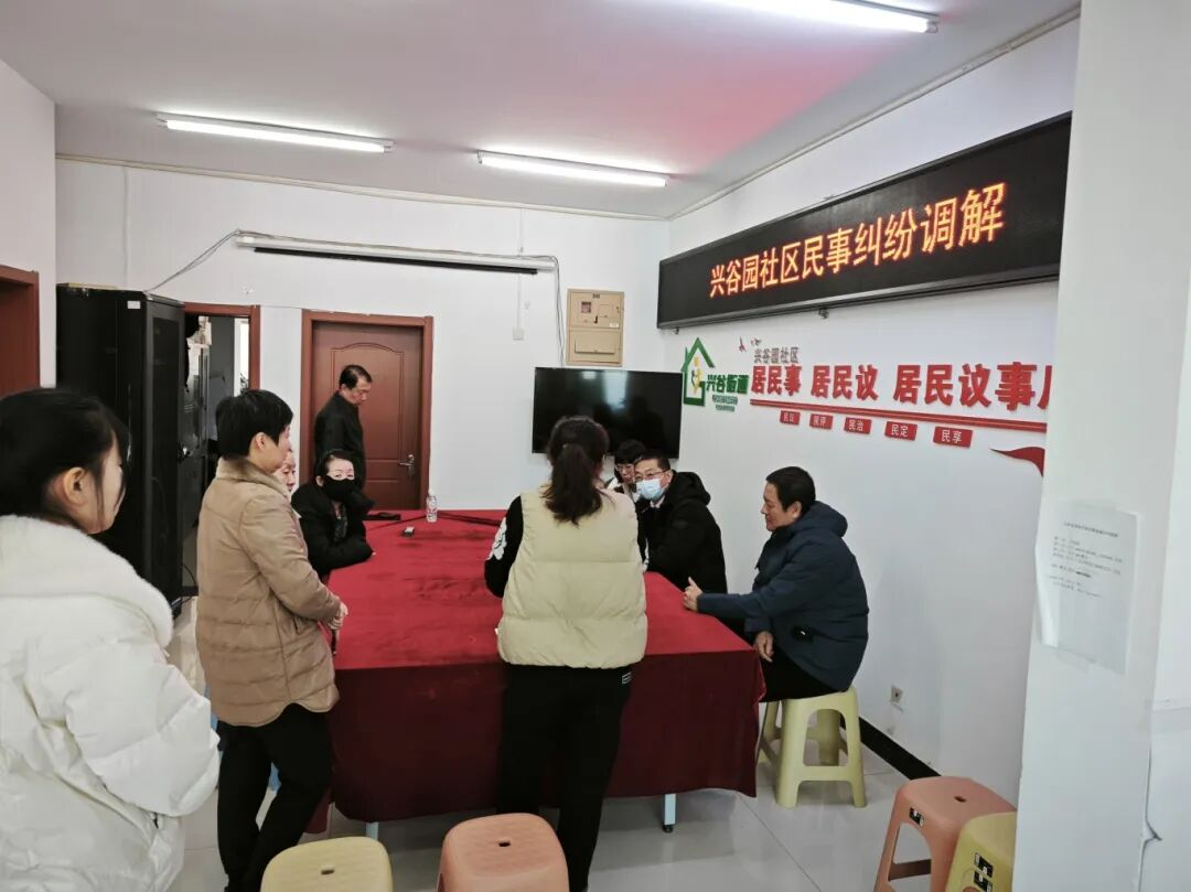 事后,双方就经济损失赔偿事宜向社区提出调解请求。兴谷园社区人民调解委员会于12月20日上午组织双方进行协商。社区书记、副书记、副主任、网格长、网格员及当事人共同参与,经两小时沟通,双方达成初步共识:楼下住户列出损失清单并联系装修公司评估修复费用,楼上住户同意承担相应赔偿,计划于次年3月15日停暖后施工。此次调解工作获得双方认可。