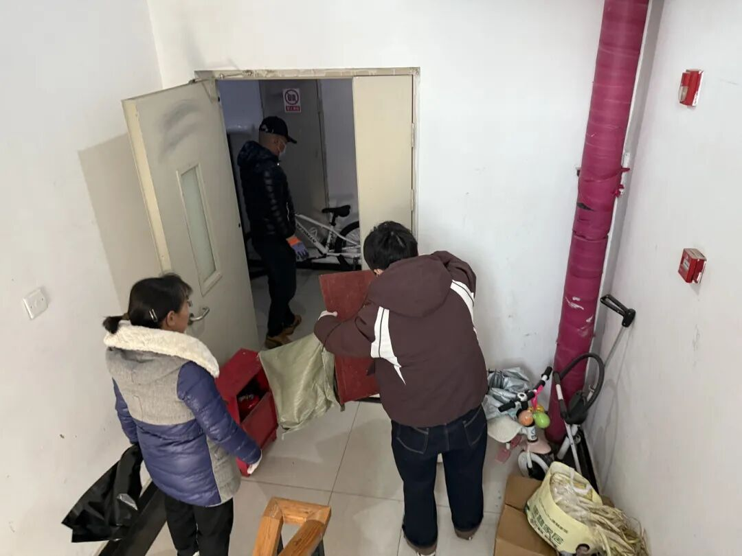 整治现场,工作人员兵分两路,一路对小区楼道、消防通道内的废旧家具、纸箱、杂物等堆放物进行集中清理;另一路重点排查小区公共区域长期停放的“僵尸车”。面对部分居民不理解、不配合的情况,工作人员始终保持耐心,面对面讲解占用消防通道的安全隐患及相关法律法规,晓之以理、动之以情,最终赢得居民的理解与支持。经过一番努力,楼道杂物被彻底清运,长期占道的“僵尸车”被集中拖移,堵塞的消防通道恢复畅通,小区环境焕然一新。
