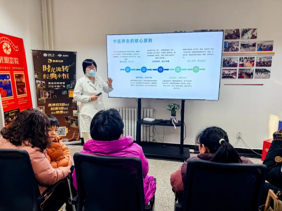 活动伊始,区医院青年志愿服务队志愿者首先带来了一场贴合时令、深入浅出的中医养生健康知识讲座。医务志愿者结合《中医养生智慧》内容,围绕中老年冬季养护主题,系统讲解了中医“顺应自然、调和阴阳”的基础养生理念,并针对老年生理特点及冬季常见健康问题,分享了包括饮食调养、作息安排、情志调节在内的综合养护建议,以及简便易行的居家穴位按摩方法。讲解深入浅出,不仅传递了“治未病”的预防思想,更强调了结合个人体质进行针对性调理的重要性。讲座后的互动问答环节气氛活跃,大家就自身关心的健康困惑积极提问,志愿者一一给予耐心细致的解答。