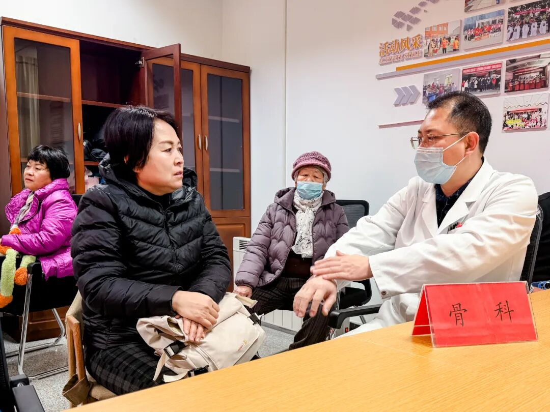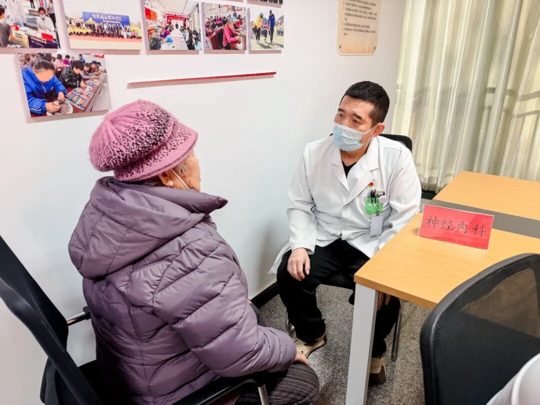 健康讲座后,来自区医院神经内科、骨科、中医科的青年医师及护理志愿者迅速投入到一对一的暖心义诊服务中。在神经内科咨询区,医师耐心询问病史,针对头晕、失眠等常见症状进行初步筛查与健康指导;骨科医师则细致解答关节疼痛、腰腿不适等问题,提供康复建议;中医科医师通过望闻问切,开展体质辨识,给予个性化调理方案;护理志愿者也同步为到场群众测量血压,及时给予健康提醒。义诊现场秩序井然,志愿者们以专业诊断、耐心解释和温暖叮嘱,让每一位咨询者都感受到了实实在在的关爱与帮助。