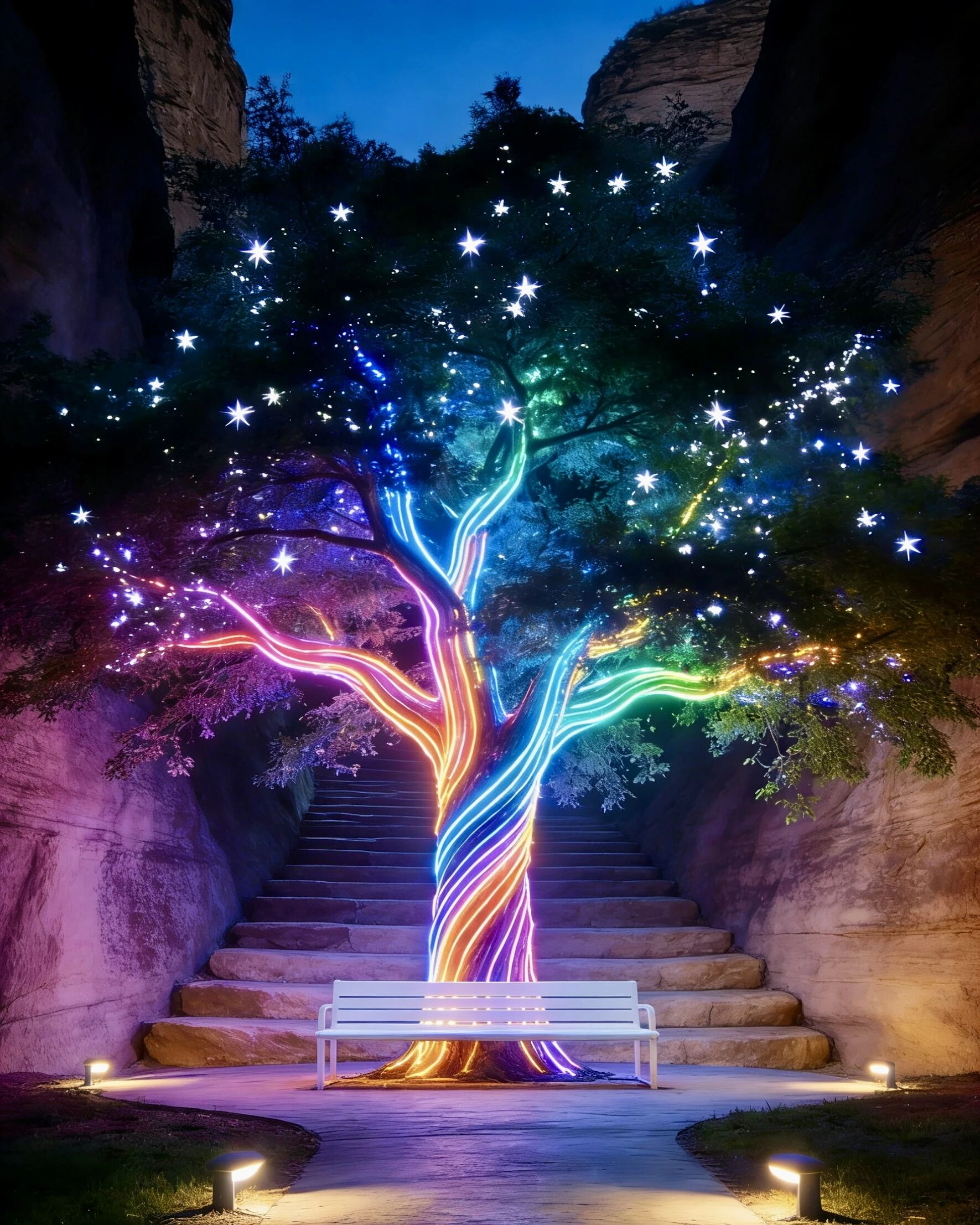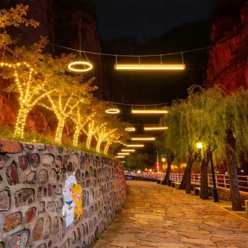 漫步峡谷,犹如闯入“星光森林”。点点流星灯缀满枝头,随风轻摇,宛如星河落凡间,为静谧山林披上浪漫纱衣。