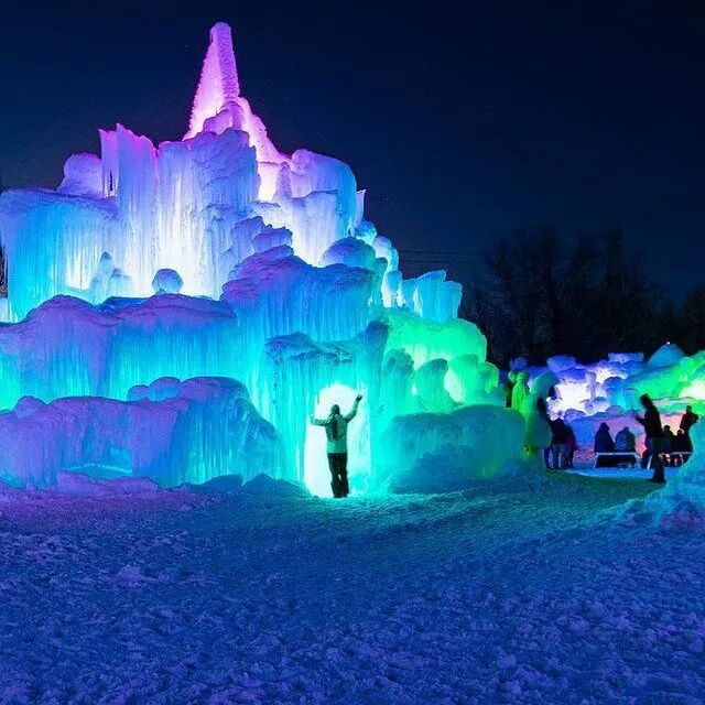 彩色灯光辉映冰瀑,洁白冰体幻化为璀璨画卷。蓝、紫、粉、金交织变幻,冰峰、冰帘流光溢彩,宛若行走于童话水晶宫。