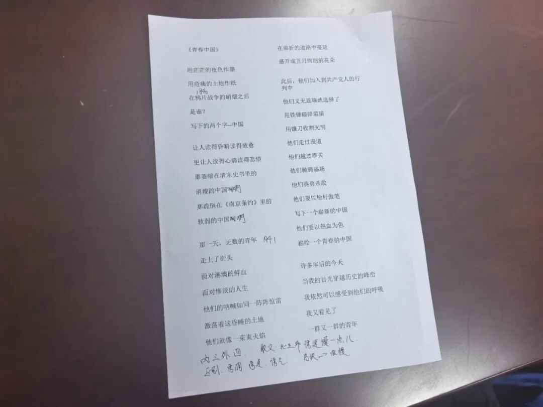 活动现场,老师以“声音唤醒”为核心,带来干货满满的实操训练。针对大家普遍存在的说话气短、声音发紧等问题,重点讲解腹式呼吸技巧并指导现场实操,通过气泡音、哼鸣练习帮助大家放松声带,再搭配口腔开合度训练,让每一位参与者快速掌握让声音清晰有力的方法。基础校准环节中,老师聚焦普通话平翘舌、前后鼻音等常见发音难点,通过逐字示范、分组跟读的方式帮助大家纠正发音误区。同时,以经典篇目《青春中国》为范本,细致拆解“说话”与“朗诵”的本质区别,引导参与者建立“朗诵是情感传递与表达”的核心认知,打破“朗诵=背稿”的固有思维。理论与技巧结合后,活动进入实操练习环节。参与者们运用校准后的发音,搭配所学的呼吸发声技巧,分组朗诵《青春中国》选段,在老师的逐句点评与指导下,真切感受发声方式变化带来的表达提升,现场氛围热烈且充满感染力。