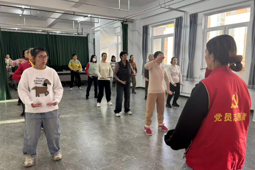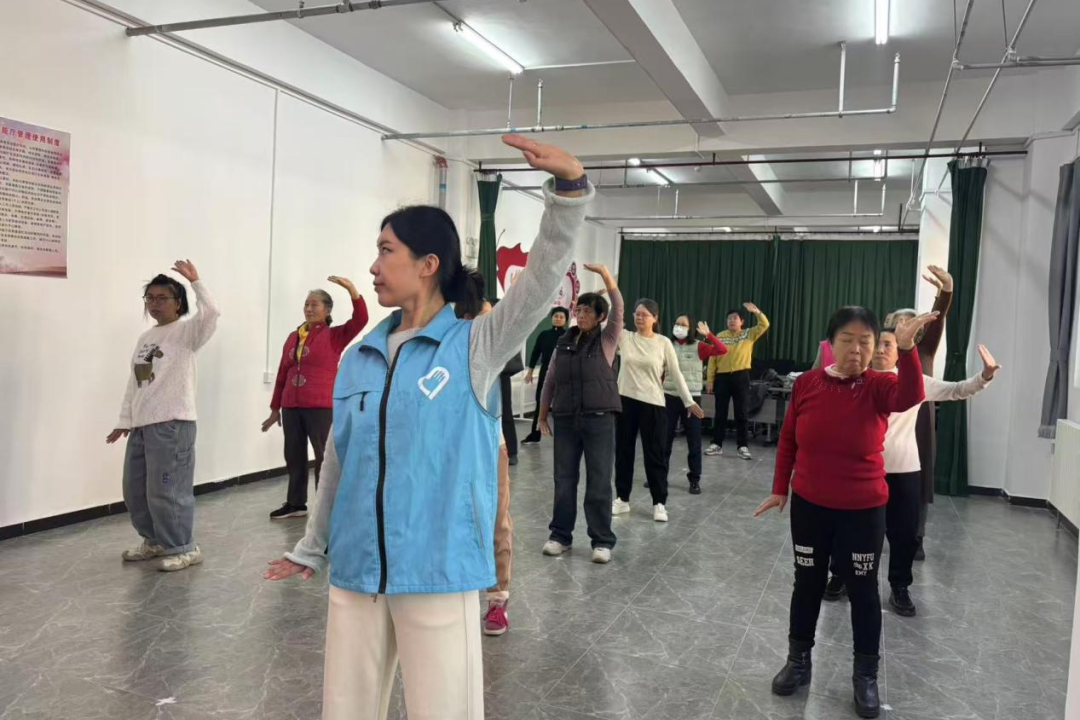 教学过程中,老师以“双手托天理三焦”“左右开弓似射雕”等基础招式为切入点,采用分步示范、逐句讲解的方式,细致拆解每个动作的发力点、呼吸节奏与身体姿态。针对居民们动作不标准的问题,老师逐一上前纠正指导,居民们精神饱满、认真模仿,反复揣摩动作细节。
