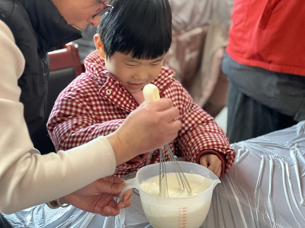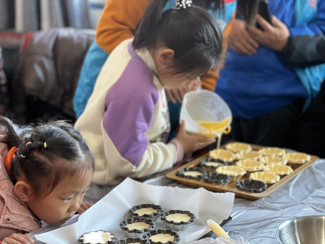 法治知识宣讲结束后,热闹温馨的可颂蛋挞制作环节正式开启,烘焙老师细致讲解食材配比、制作步骤、烘焙技巧等要点,从蛋液调配、装杯,再到烤箱温度把控、成品出炉、裱花装饰,每一个环节都耐心示范指导。同学们分组协作、互帮互助,精准把控食材比例、严格遵守操作规范,偶尔的小失误在彼此提醒下顺利化解,现场欢声笑语不断,奶香与黄油香萦绕四周。