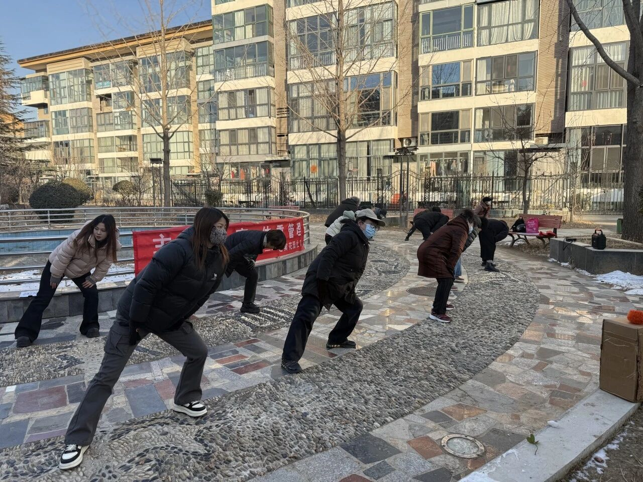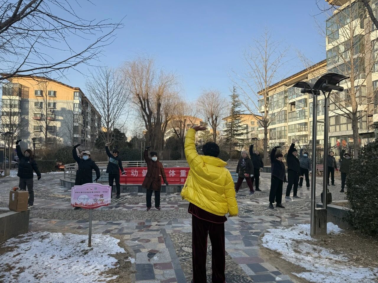 12月26日上午,冬阳和煦,迎宾花园社区的八段锦培训课如期开展。在前阶段居民已经系统掌握全套八式的基础上,本次课程聚焦于动作的精准打磨与要领规范,吸引了十余位社区居民热情参与。