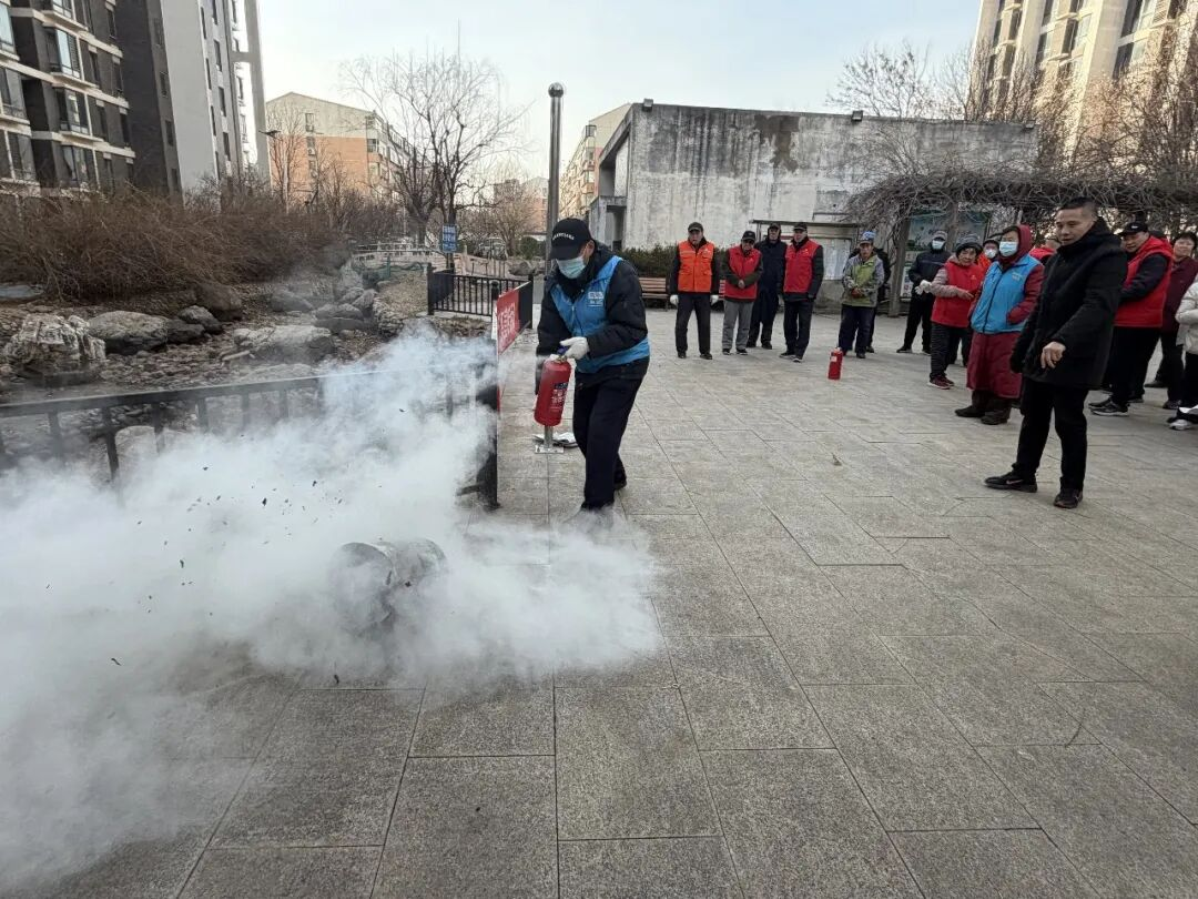 演练前,社区工作人员详细讲解消防安全知识,明确演练流程及注意事项,普及消防水带、灭火器等消防设施的正确使用方法,确保参训人员掌握关键操作技巧。演练中,参训人员分工协作、有序实操,全程模拟火情处置流程,熟练掌握应急操作技能,进一步增强了协同配合能力。此次消防演练以练筑防、以练促学,不仅提升了物业员工、社工及网格员的消防安全意识和应急实操水平,也切实夯实了社区消防安全防控基础。