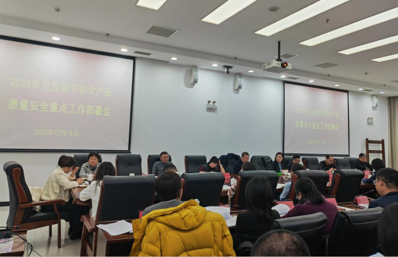 组织召开2026年元旦春节期间农产品质量安全监管工作部署会,聚焦节日消费关键节点,强化风险防控意识,对“两节”期间监管保障工作进行全面细化部署。要求各相关单位切实提高政治站位,牢固树立底线思维,层层压实监管责任,形成齐抓共管的工作格局。