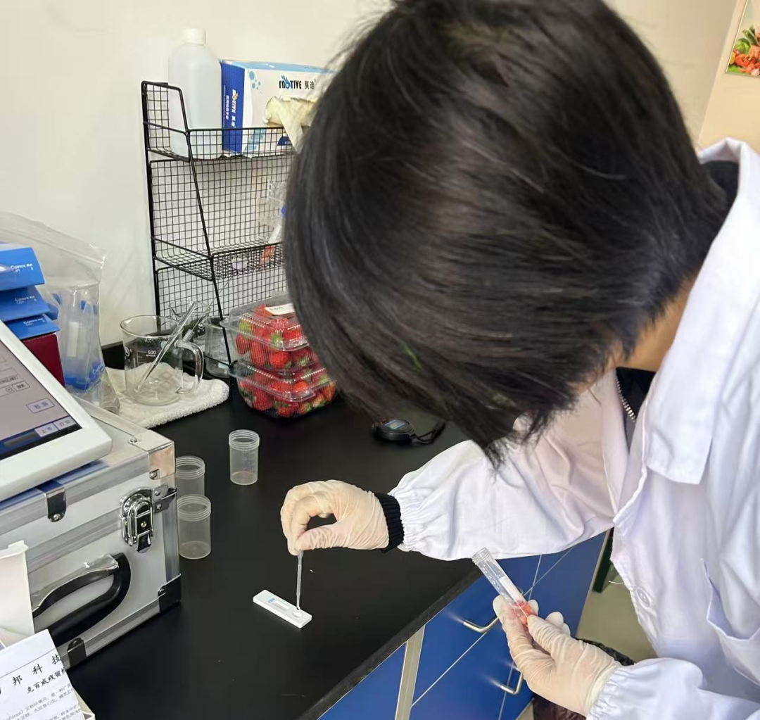 向生产经营主体配发胶体金快速检测卡,检测卡覆盖常见农药残留风险项目,具有操作简便、检测快速、灵敏度高等特点,有助于提升一线监管人员的现场筛查能力和生产主体的内部质量控制水平,为农产品上市前增设一道“安全滤网”。
