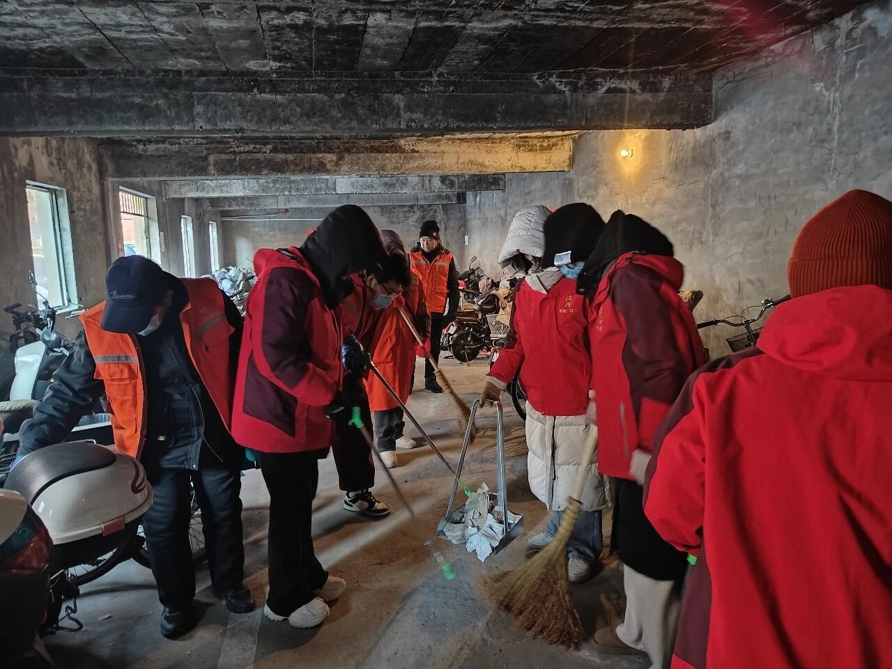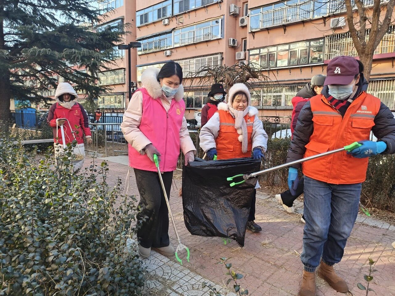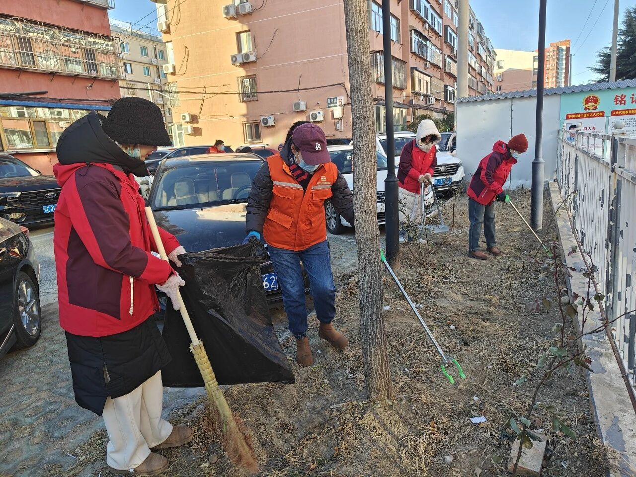 活动现场,大家手持扫帚、夹子、垃圾袋等工具,分工明确、协作默契、干劲十足。志愿者们聚焦辖区楼道堆物、房前屋后杂物等重点区域,集中开展清理清运工作,有效消除了占用消防通道的安全隐患;网格员们穿梭在社区绿化带中,细致捡拾白色垃圾、枯枝败叶,全方位清理卫生死角,让绿地重现整洁生机。