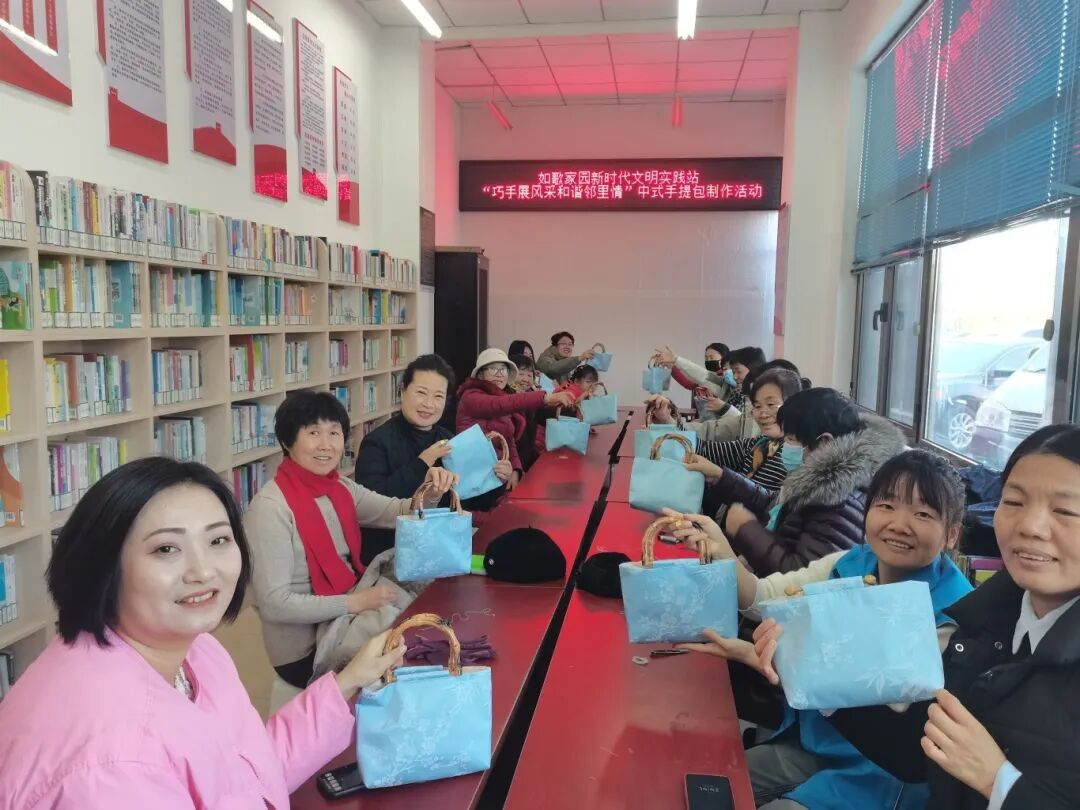 活动最后,每个人都自豪地展示了自己的作品。大家手持精心制作的手工包,在一句句“包罗万象”、“包纳美好”、“包容幸福”的温馨祝福中合影留念,记录下这充满成就感与邻里温情的瞬间。