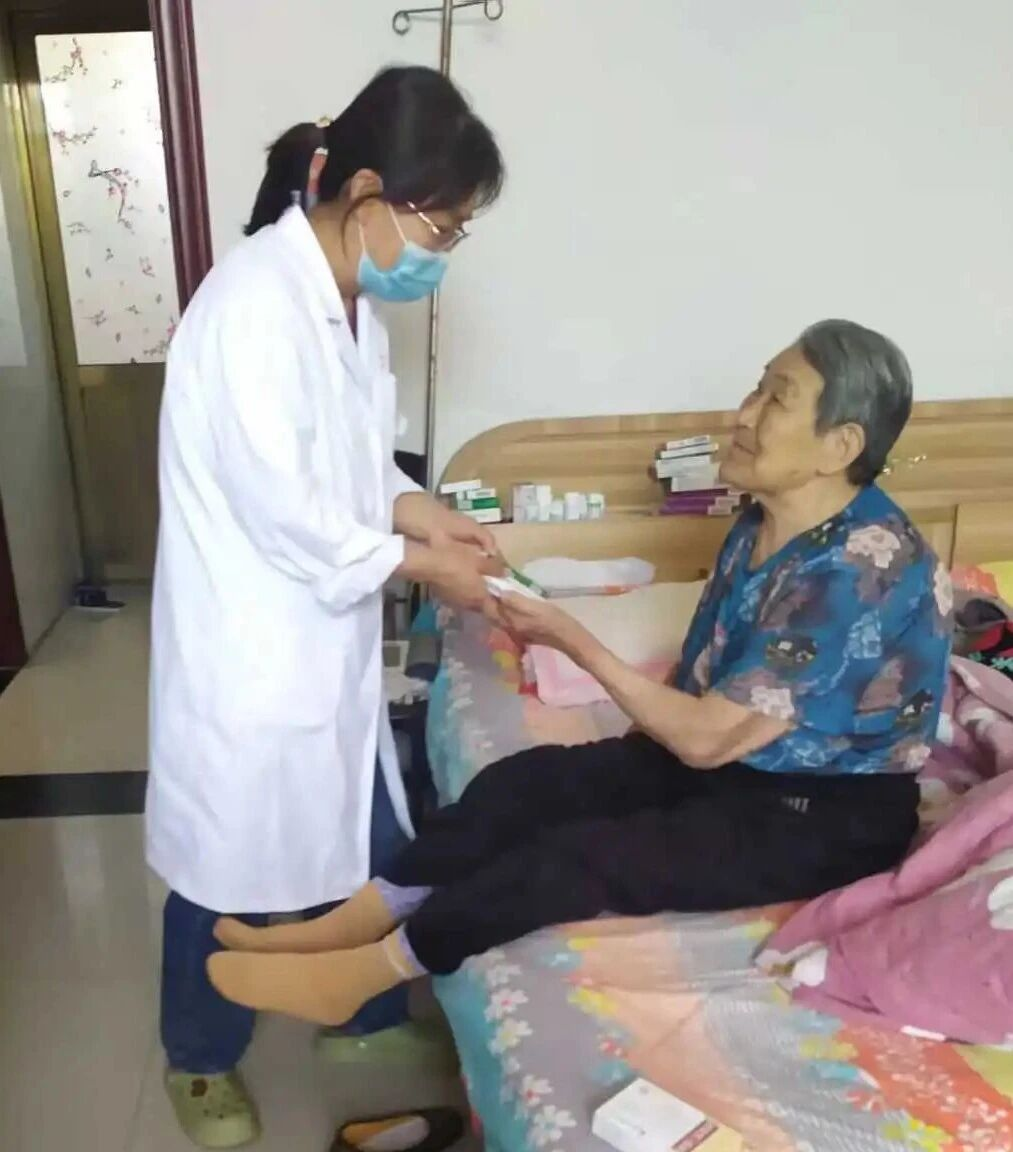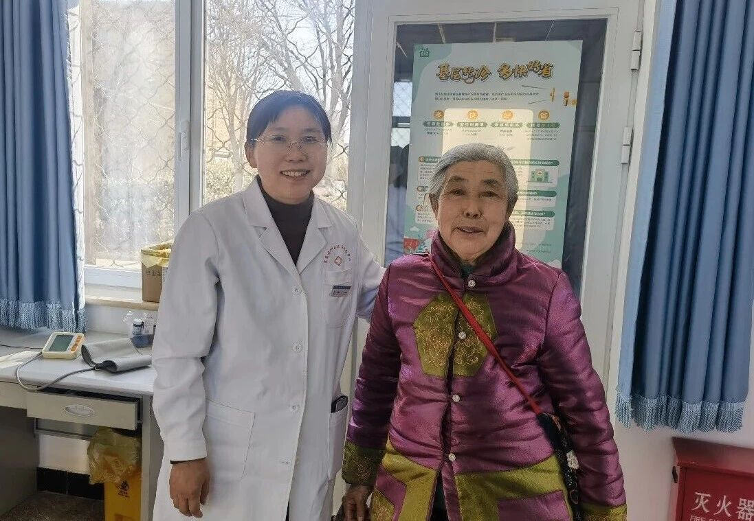 此前在大庄户社区站工作时,李海芹便是庞大妈老两口的“健康靠山”。王大爷因脑卒中行动不便,每次就诊,要么是李海芹和庞大妈一同将老人的轮椅抬进诊室,要么就是她带着血压表、听诊器、血糖仪在站外问诊。测血压时,她会轻轻挽起老人衣袖,生怕勒得老人不适;测血糖时,她柔声安慰缓解老人紧张,动作轻柔得让人几乎无感;叮嘱用药时,她更是一遍又一遍重复剂量和时间,唯恐老人记错。她还隔三差五打电话问候二老近况,陪老人唠嗑解闷。“你比亲闺女还贴心!” 庞大妈总念叨,心里的烦心事,跟李大夫念叨念叨,比吃药都管用。面对老人的絮叨,李海芹始终耐心倾听、柔声劝慰,这份细致的温情,也让医患之间结下了深厚情谊。