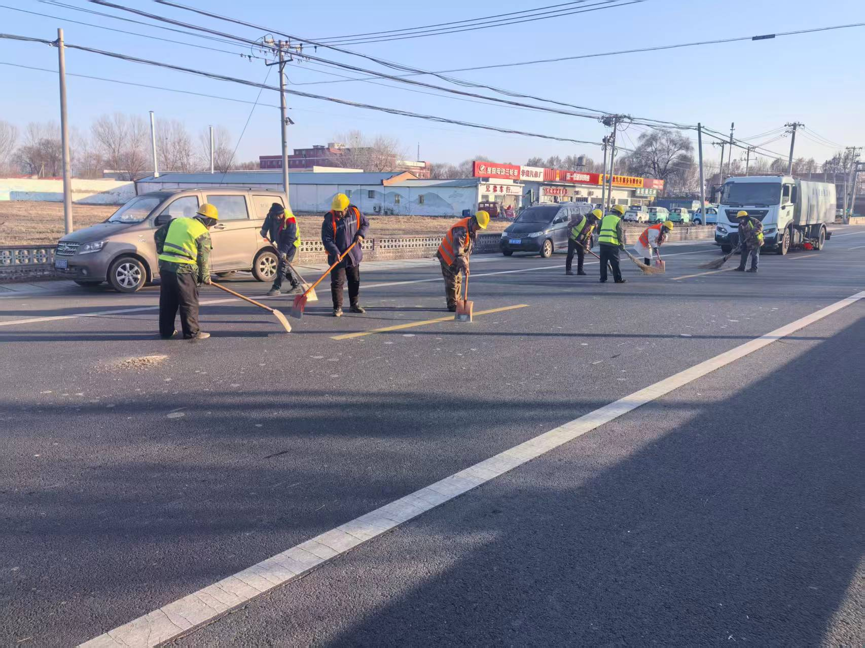 重点路段强保洁,科学作业提质效。针对镇区主干道、城乡接合部等扬尘高发区域,推行“机械化清扫+人工精细化保洁”模式,根据冬季气温变化灵活调整作业时序,避开低温结冰时段,采用“吸、扫、冲、洒”协同作业法,加密洒水降尘频次。对路缘石、护栏缝隙等机械作业盲区,组织保洁人员逐一清理,确保路面无积尘、无浮土,实现“车行无扬尘、路面见本色”。