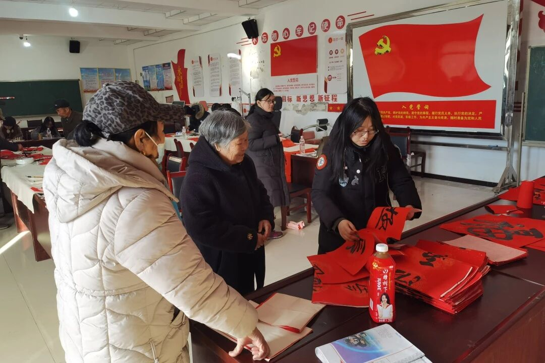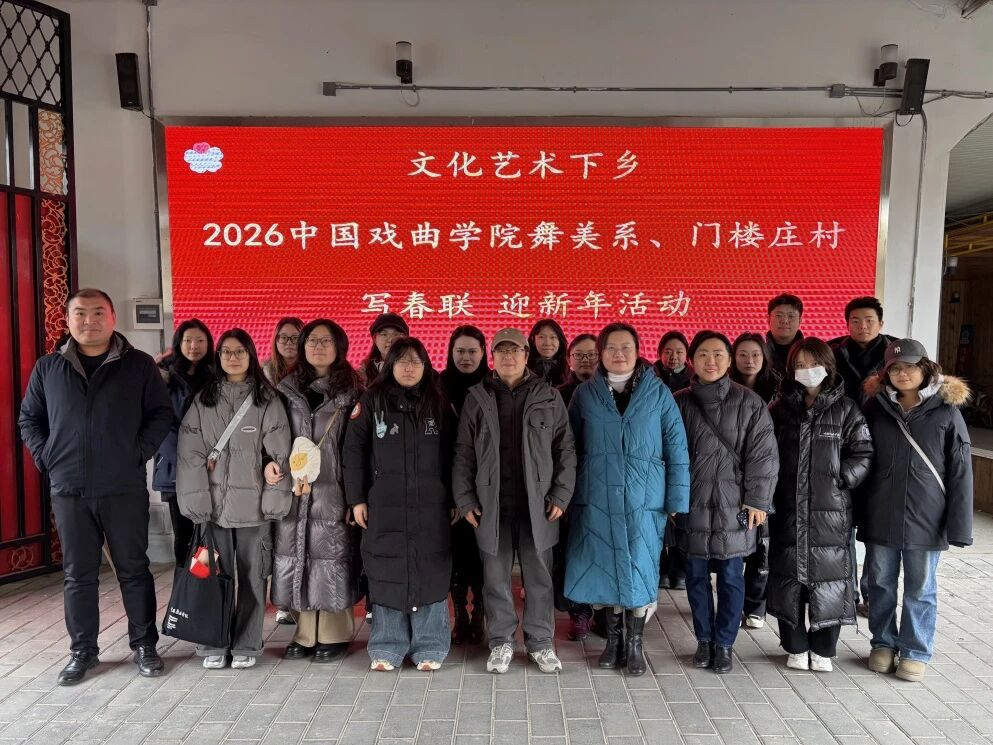 门楼庄村党支部与舞美系综合教师党支部加强结对共建,举办2026写春联迎新年活动,为村民们送去新春祝福。在活动现场,师生们热情高涨,挥毫泼墨,为村民们准备了200余副春联、300多个“福”字和红包年画,作品融入了传统戏曲元素,以群众喜闻乐见的形式,将美好的新春祝愿与传统文化精髓融入一幅幅春联作品中,得到了村民们的一致欢迎和好评。