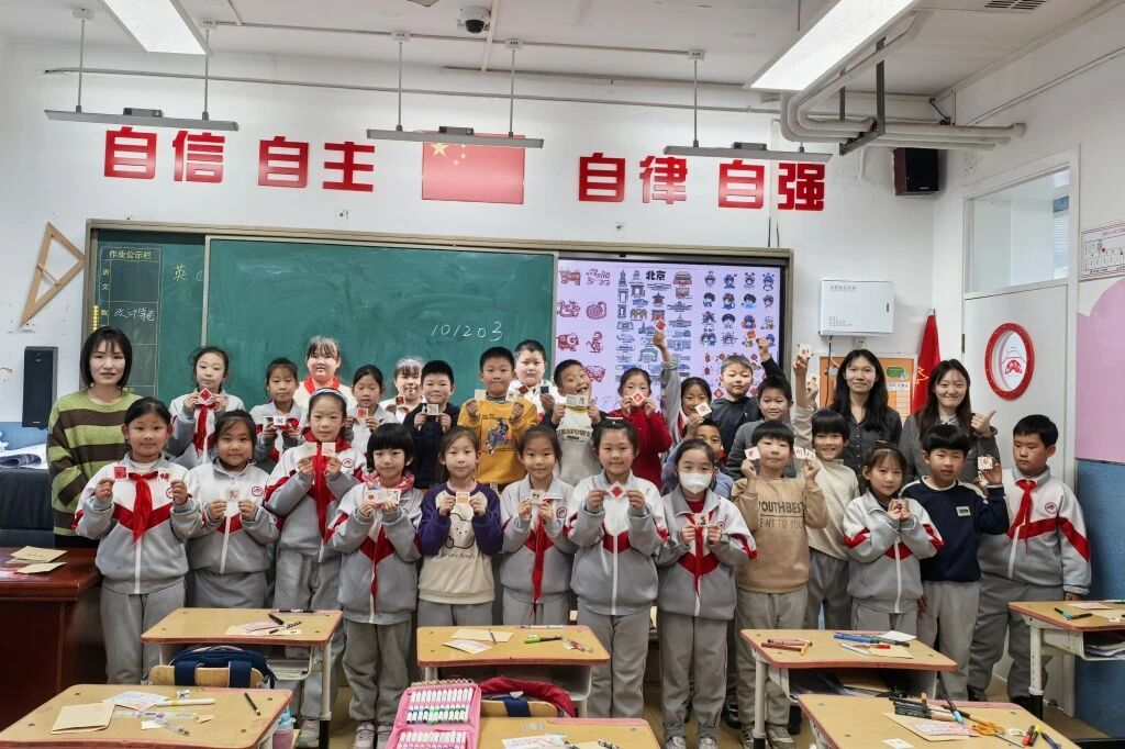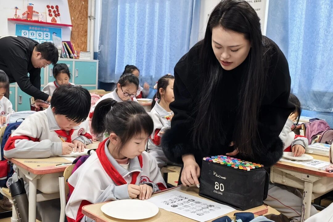 依托乡村美育教学实践基地,舞美系师生前往门楼中心小学开展“国粹润童心”戏曲艺术公益课堂暨家校共育美育活动,通过参观小学鼓文化艺术馆、与家委会代表座谈交流、颁发艺术教育校外辅导员聘书等,加强了校际交流联系。三位研究生同学为小学生讲授了《中国传统纹样设计》《传统邮票设计》《戏曲服饰里的文化密码》等艺术课程,通过戏曲知识讲解与互动体验,加深了小学生对优秀传统文化的认识,增强了文化自觉和自信。
