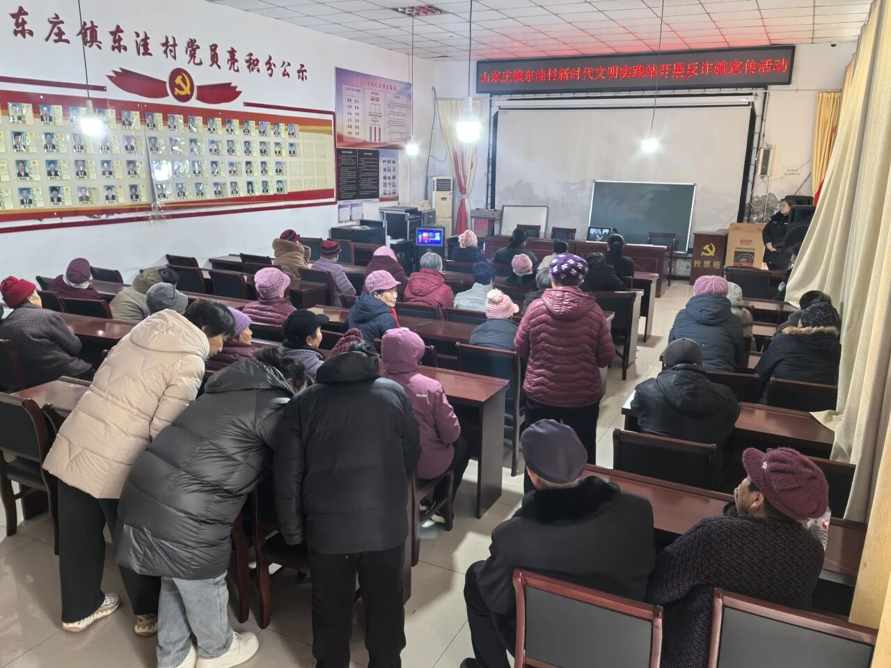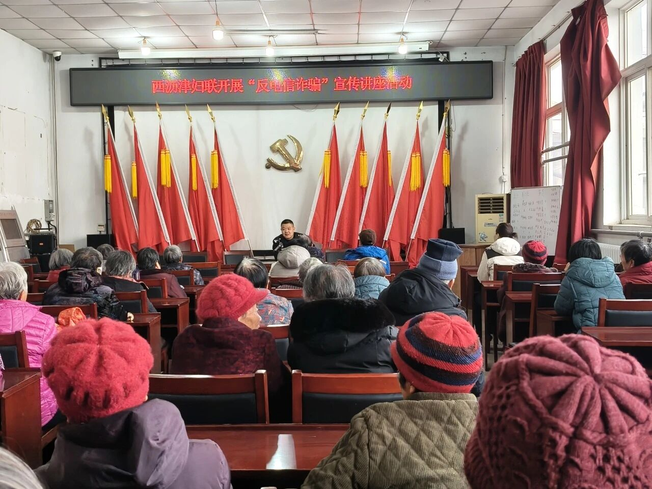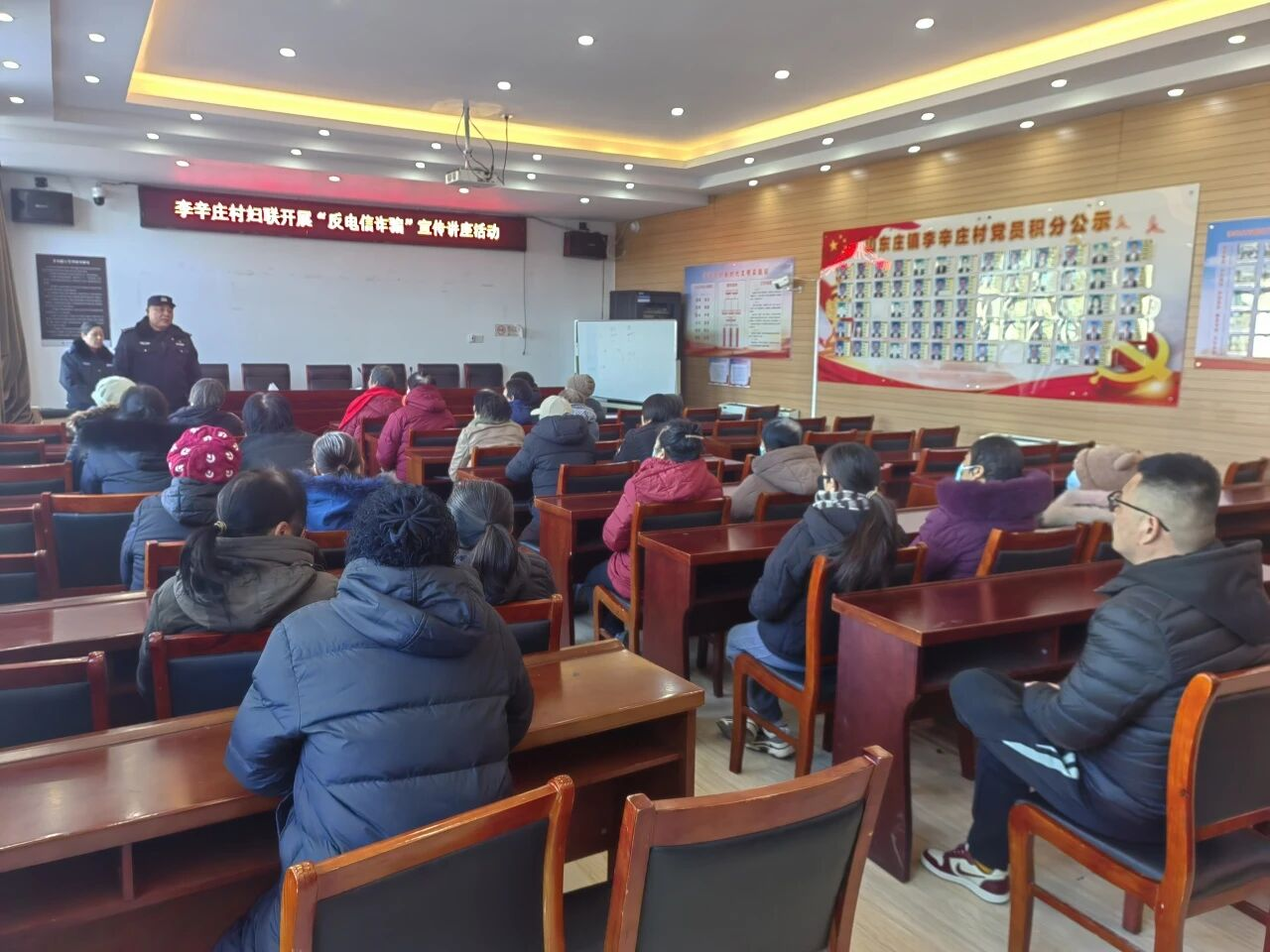 为有效提升辖区群众防范电信网络诈骗的意识和能力,筑牢财产安全防线,近日,山东庄镇妇联联合派出所,深入各村居开展形式多样的反诈宣传教育活动,将防骗知识送到群众身边,守护好人民群众的“钱袋子”。