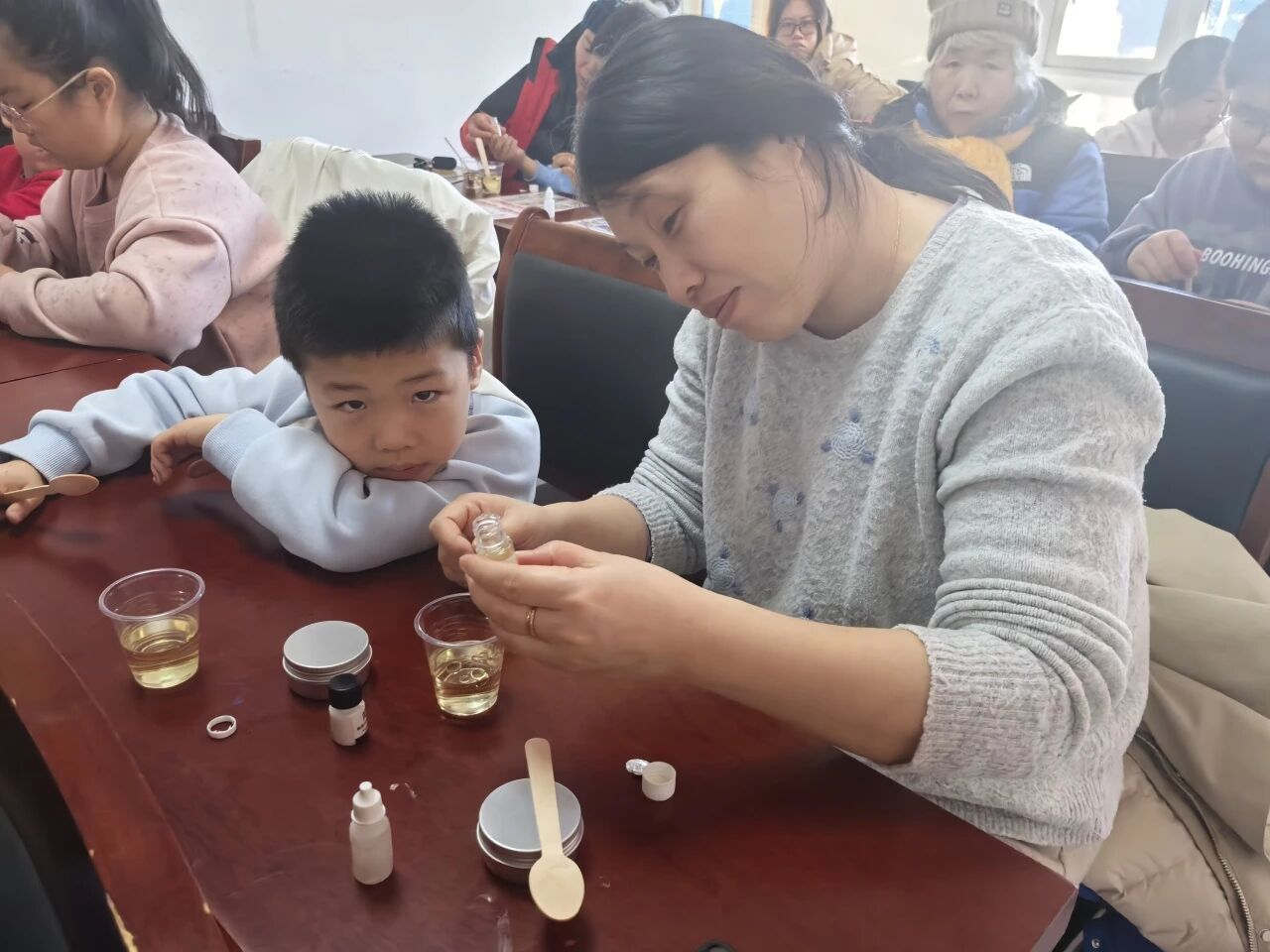 活动现场,老师细致讲解护手霜的制作原理与护肤知识后,亲子家庭迅速投入创作。搅拌、添加香薰、装饰容器,家长与孩子默契配合,专注每一个步骤,合力制作出专属护手霜。成果分享环节,孩子们骄傲地展示自己的作品,讲述创作思路,现场掌声不断。