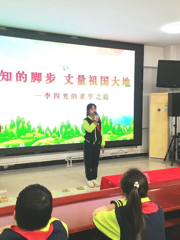活动伊始,来自中心小学的一名少先队员担任主讲人,以饱满的情感讲述了“中国地质之光”李四光先生的生平事迹。故事从先生少年时期于小油灯下刻苦攻读讲起,描绘了他为寻求救国真理远渡重洋、孜孜求学的历程,重点突出了他在国家需要之际,毅然将个人所学与国家命运紧密结合,投身地质事业、矢志报国的崇高选择。通过学生的深情讲述,李四光先生身上所体现的“求真探索、爱国奉献”的科学精神变得具体而生动,为在场同学树立了光辉的学习榜样。
