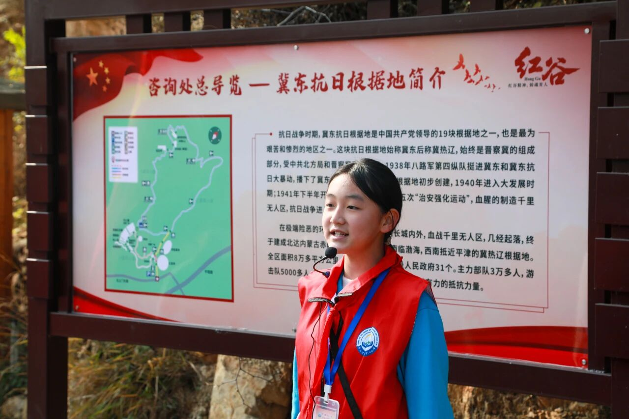 在红谷·冀东抗战党史教育基地的“英雄树”下,孩子们亲手触摸弹痕,聆听老人讲述1944年那场激战;在“舍身崖”前,十一位勇士纵身一跃的故事让不少孩子湿了眼眶。