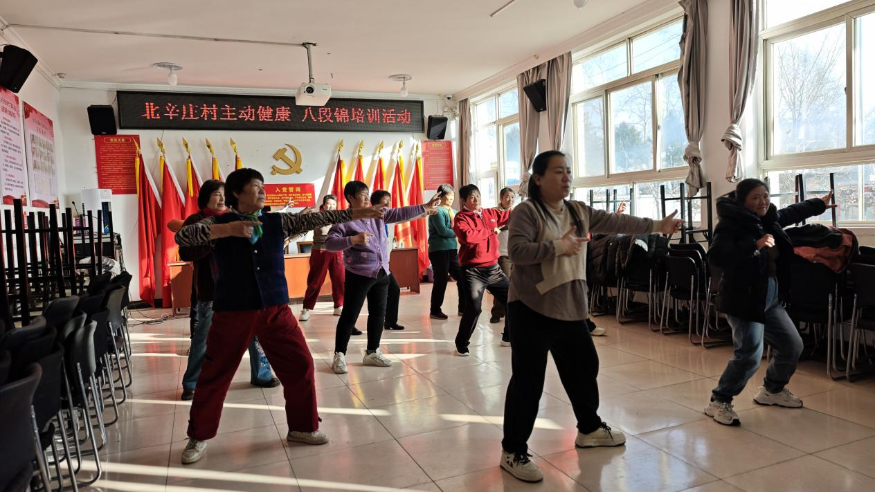 北辛庄村组织开展“主动健康·八段锦培训活动”。现场由曾参加镇级培训的学员通过播放教学视频,带领村民们一同练习。大家从起初动作稍显生疏,逐渐做到舒展流畅、整齐划一。休息间隙,村民们积极交流锻炼心得,普遍反映八段锦简单易学,练习后身体放松、心情舒畅,十分适合日常居家锻炼。此次活动不仅帮助村民掌握了一项实用的健身技能,更促进了邻里交流,营造出积极健康、融洽和谐的乡村氛围。