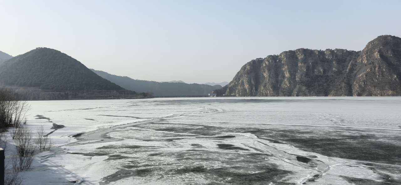 1月14日夜间,一场雪花悄悄造访了大华山镇。清晨的西峪水库,水面铺着一层薄薄的积雪,远山如黛,近水含烟,构成了一幅天然的水墨画卷。
