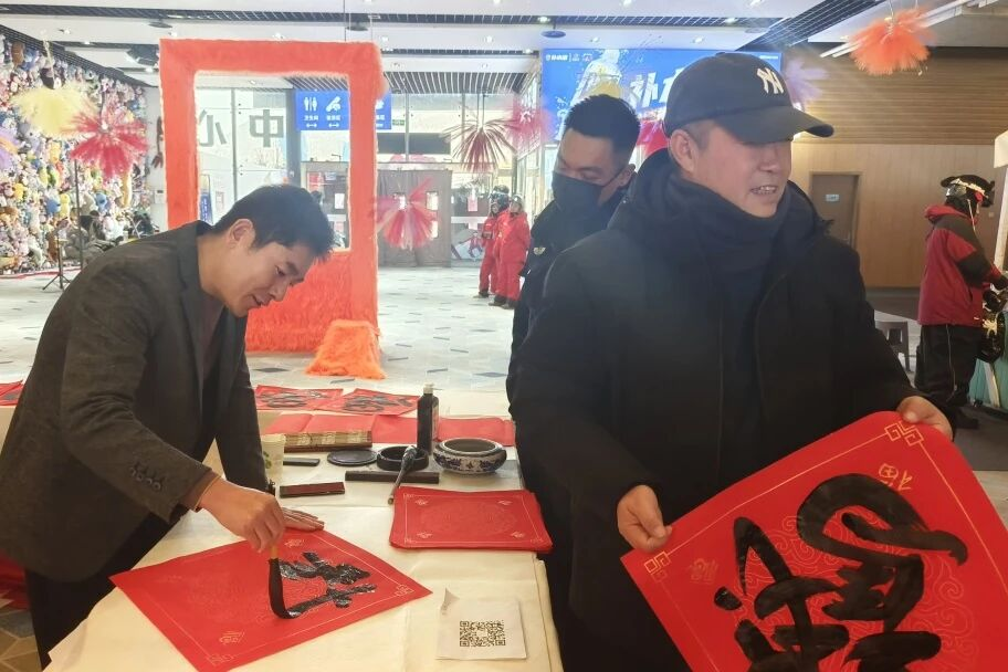 书法文化展示区内翰墨飘香。平谷区书法家协会副主席兼秘书长胡本顺领衔一众书法家,现场挥毫泼墨、笔走龙蛇。一幅幅墨韵饱满、遒劲有力的“福”字跃然纸上,被郑重赠予韩国企业代表。遒劲的笔触间,既流淌着中国传统书法的独特艺术魅力,更以“福”为媒传递着跨越国界的真挚情谊,为马年新春烘托出喜庆祥和的浓厚氛围。展区设置互动创作区域,充分展现平谷区“书法之乡”的深厚底蕴,邀请爱好书法的嘉宾提笔创作、体验笔墨意趣,亲手书写专属“福”字带回家,在沉浸式体验中感受中华优秀传统文化的博大精深。