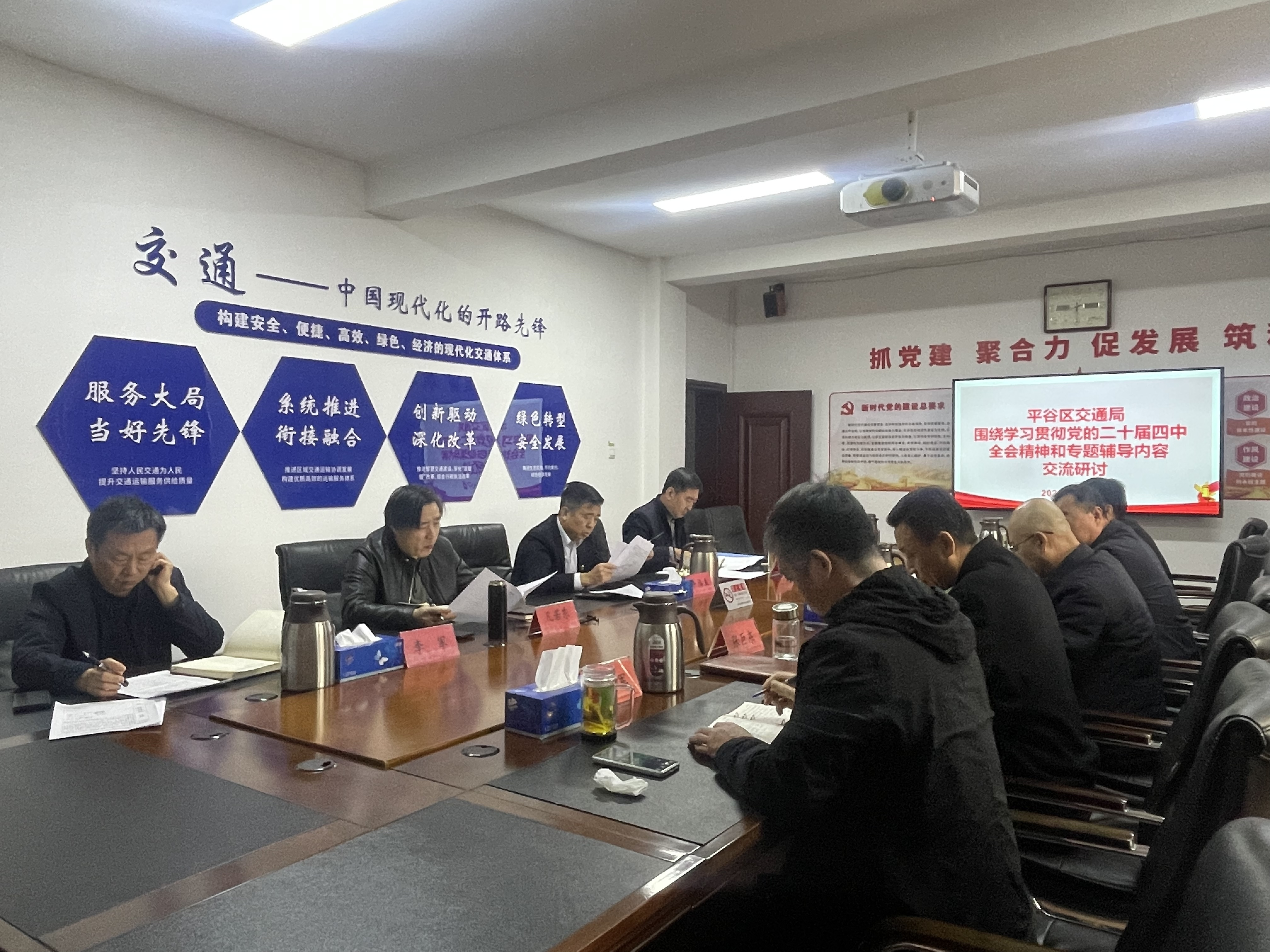 会上,各位领导干部围绕学习贯彻党的二十届四中全会精神,紧扣唐海龙书记专题辅导报告核心要义,聚焦农业中关村、首都物流高地、世界休闲谷建设,结合交通运输领域党建引领与作风建设、行业发展与服务提升、综合执法与安全保障等重点工作,就贯彻落实相关部署要求开展专题交流研讨。