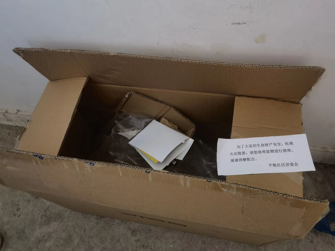 有些居民仍旧习惯将物品堆积在家门口楼道内。清理前,社区在楼道内张贴通知,告知居民自行将楼道内堆放的杂物进行清理,逾期未清理社区将统一进行集中清理。