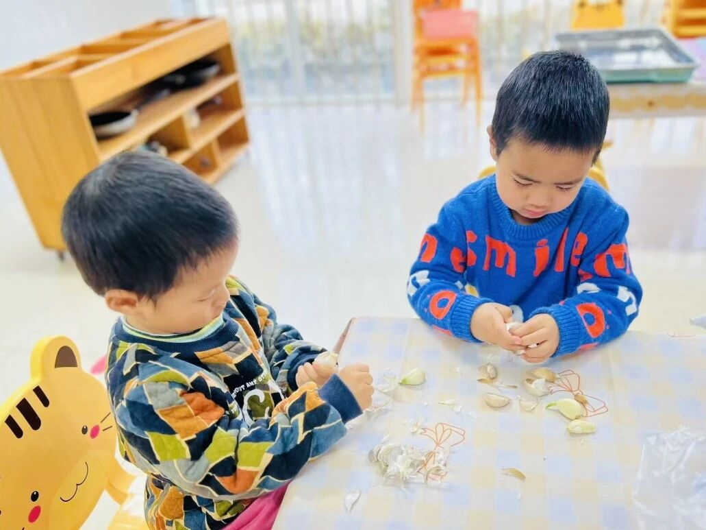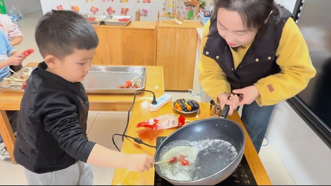 年的底蕴,藏在指尖的巧思与舌尖的烟火里。幼儿园的活动区化作年味工坊,腌腊八蒜、串糖葫芦、团糯米小圆子,小小美食家们亲手解锁三道年俗风味。孩子们以童真为翼,以传统为壤,在美食制作中,让年俗文化可触可感、可尝可忆。