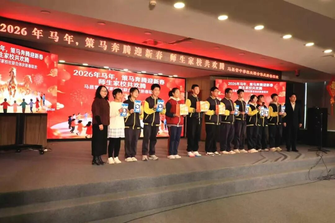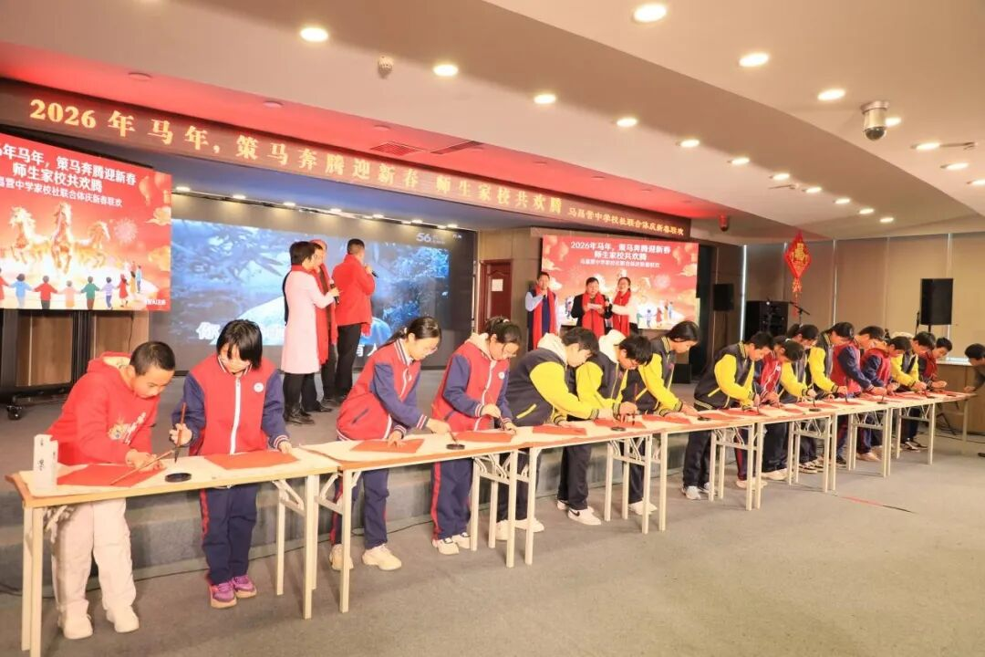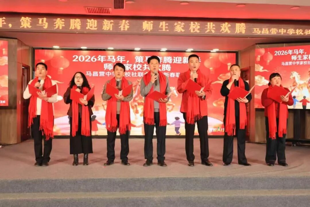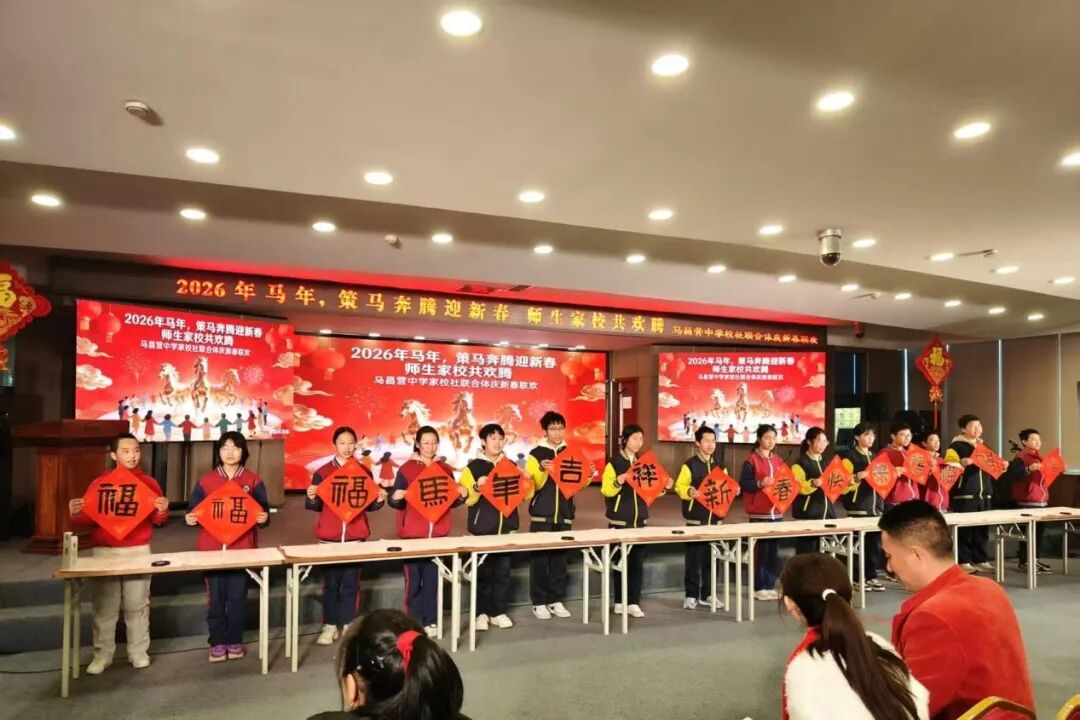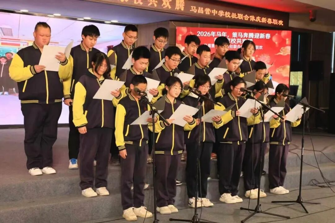 为深化新时代文明实践育人内涵,推动校园文明与家庭文明、社会文明同频共振,近日,马昌营镇新时代文明实践所联合马昌营中学家校社联合体,举办“策马奔腾迎新春 师生家校共欢腾”2026年马年新春联欢会,以文化盛宴筑牢文明根基,凝聚共育合力。