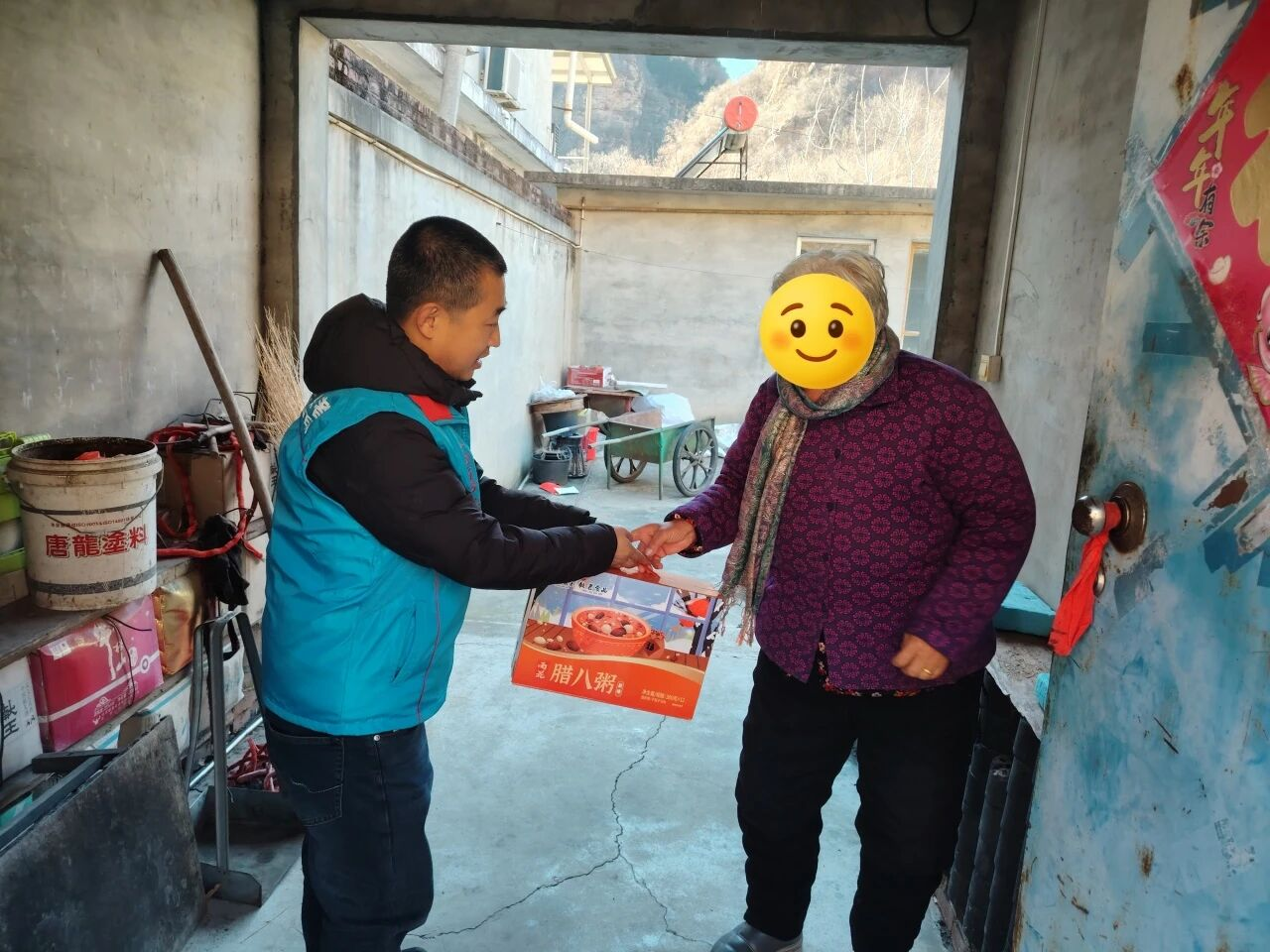 活动前夕,筹备工作便已周密展开。志愿者早早备好了满载祝福的腊八粥,分批分组深入全乡7个村,共计为68户困境家庭及孤寡老人送上了72箱腊八粥。整个过程不仅仅是简单的物资递送,更构建了一场多层次、有温度的爱心接力。