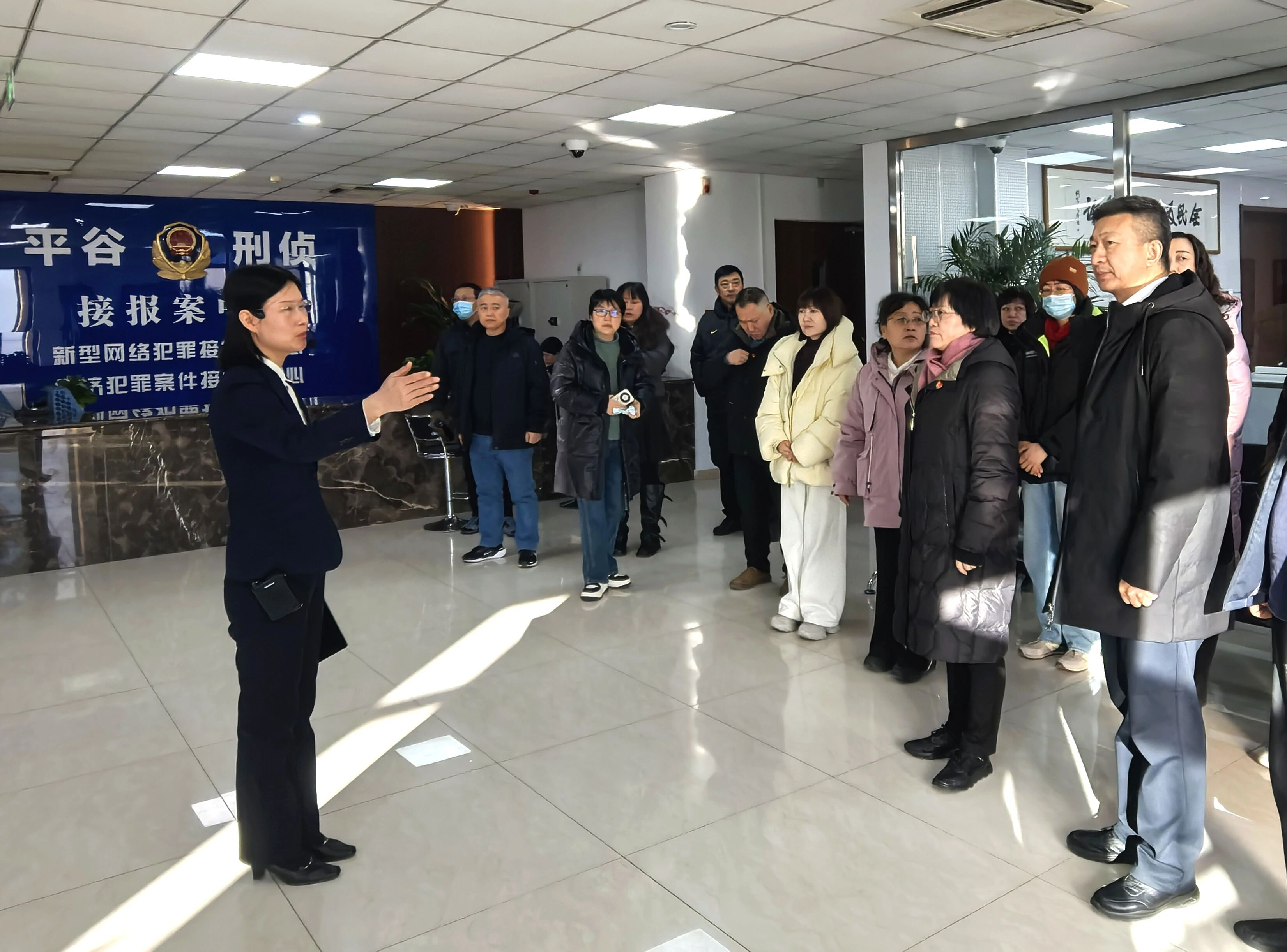 在反诈中心民警的引导下,党员们依次参观各功能区域,系统了解中心接报案、预警拦截、联动打击等工作流程和运行机制。民警结合平谷区近年来高发典型案例,深入剖析了刷单返利、冒充客服、虚假投资等常见诈骗手法,细致讲解了识别技巧和防范要领,并现场互动解答党员疑问。