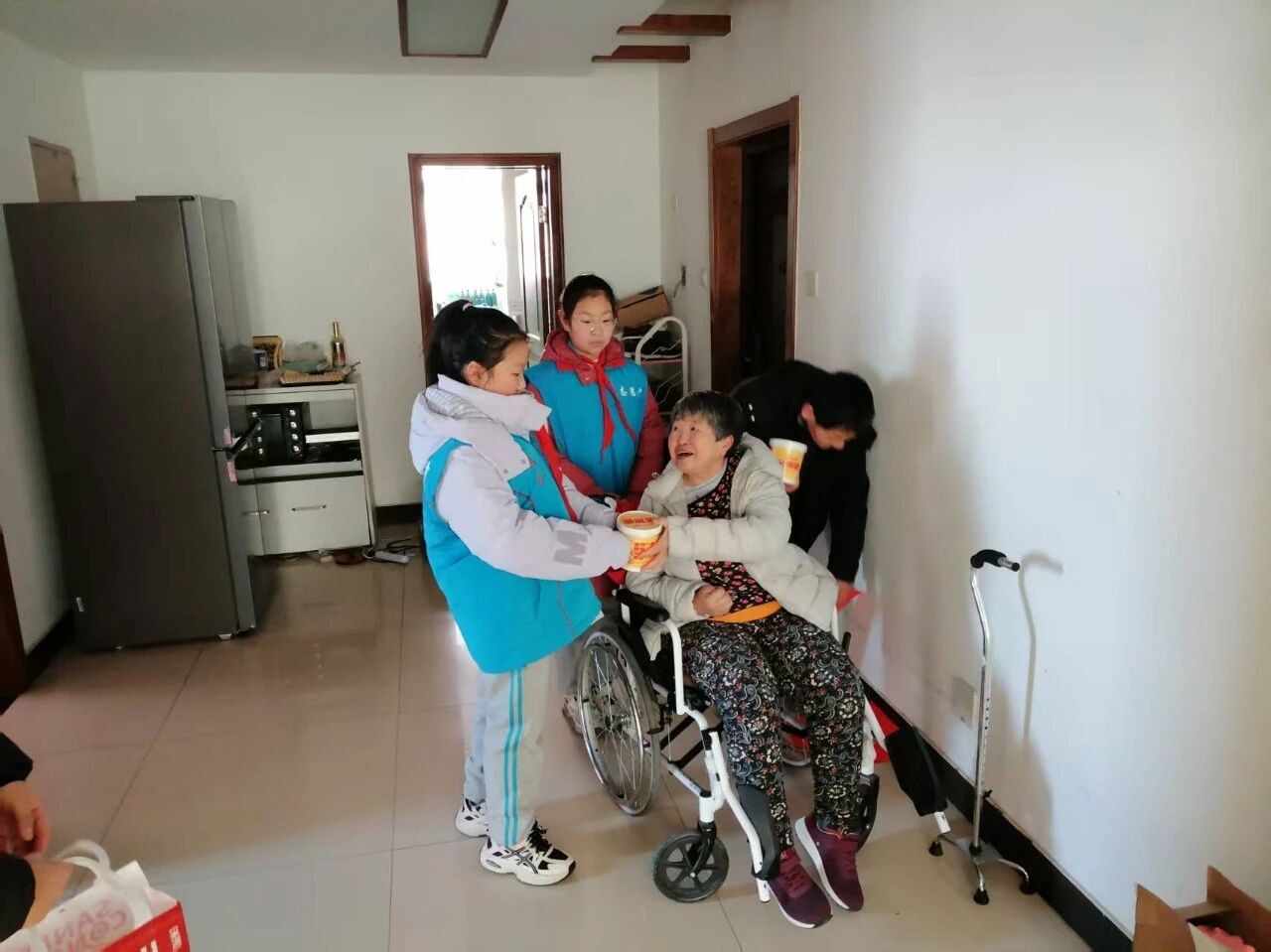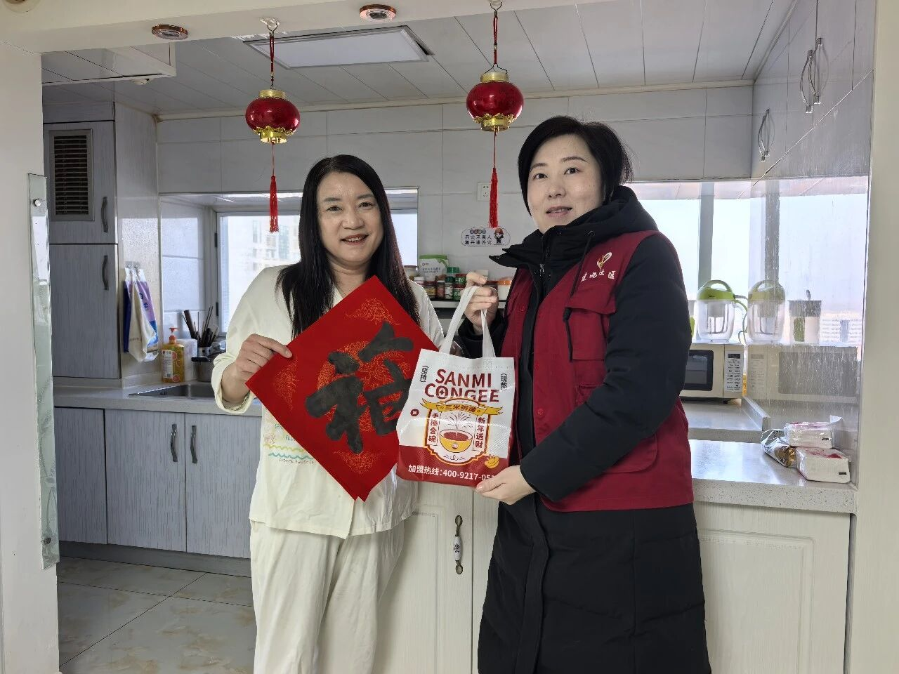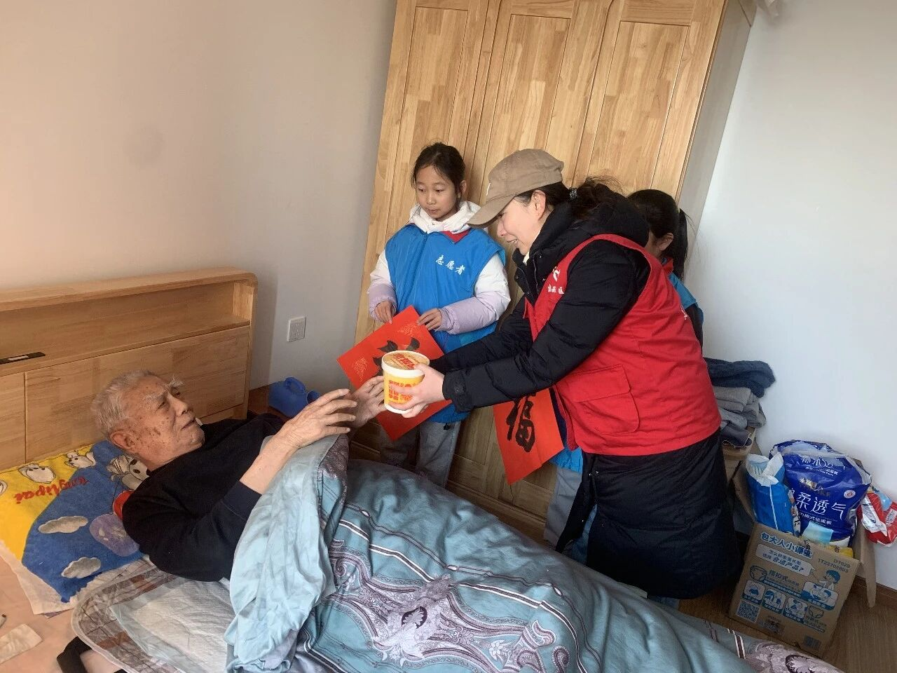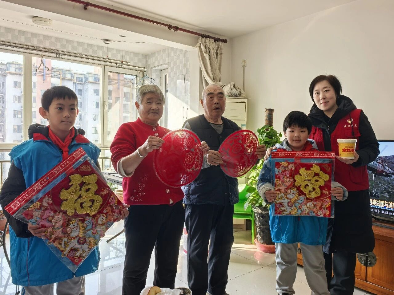 活动当天,学生代表两人一组领取腊八粥、福字、对联、窗花等慰问物资,跟随社区工作人员分批入户,为老人们送上热气腾腾的腊八粥、与老人共同张贴福字窗花,用暖心举动营造新春氛围;社区工作人员为老人普及冬季防滑、用电安全等知识,询问并记录其生活需求,学生们则围坐老人身边倾听过往故事,以真诚交流传递温情。