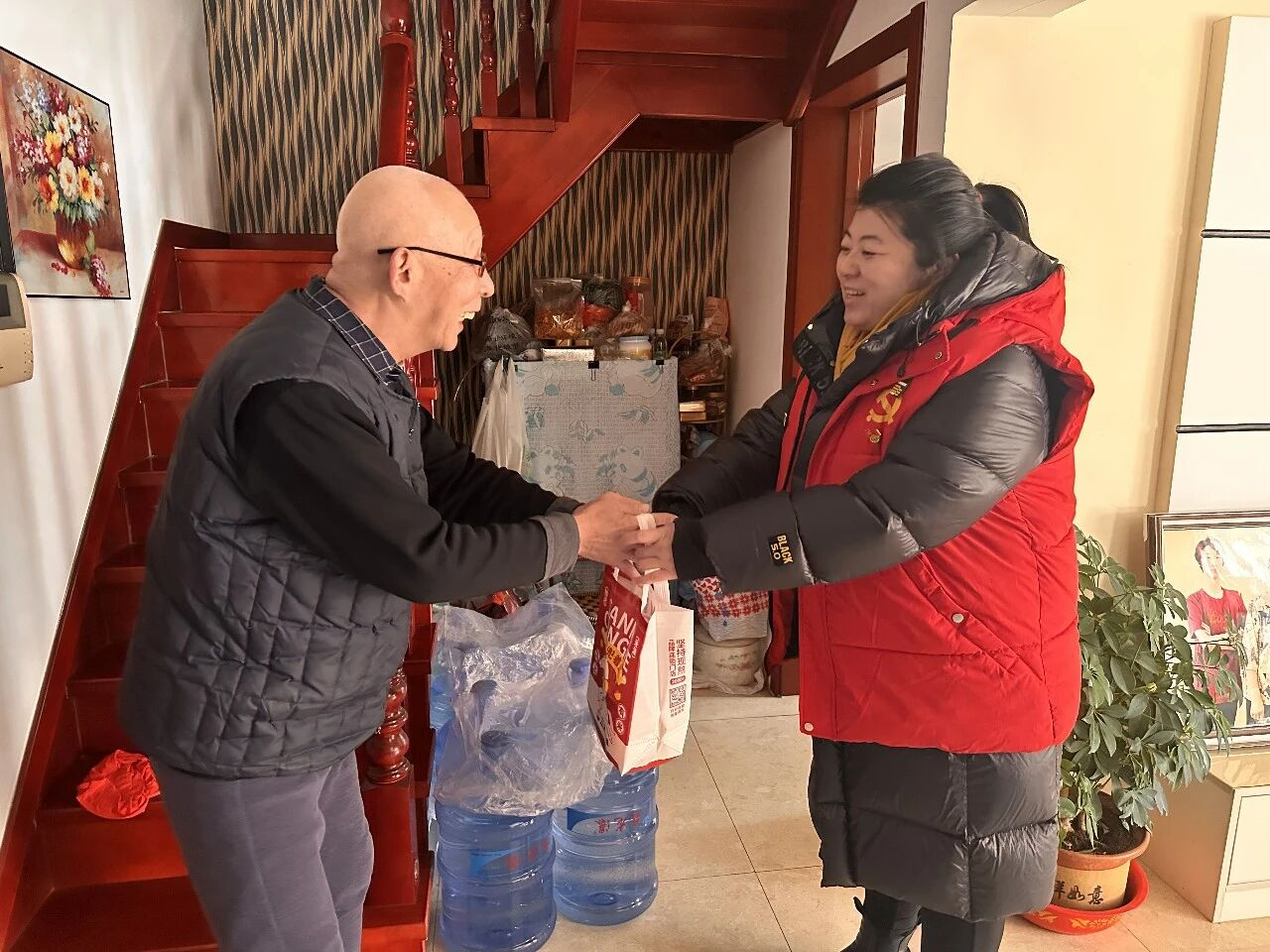 走访过程中,工作人员每到一户,都与老人亲切拉家常、话近况,细致询问其身体状况与生活需求,反复叮嘱老人注意防寒保暖、安全用电用气。接过这份满载心意的节日礼物与温情祝福,老人们的脸上都洋溢着幸福的笑容。