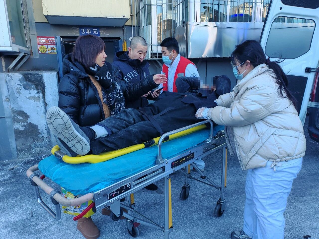 等待救护车期间,邻居们始终守在老人身边,轻声安抚其情绪,仔细留意身体反应,同时与社区工作人员保持密切沟通,实时同步现场情况。救护车抵达后,几位热心邻居当即上前帮忙,配合医护人员小心翼翼地将老人抬上担架、送上救护车。