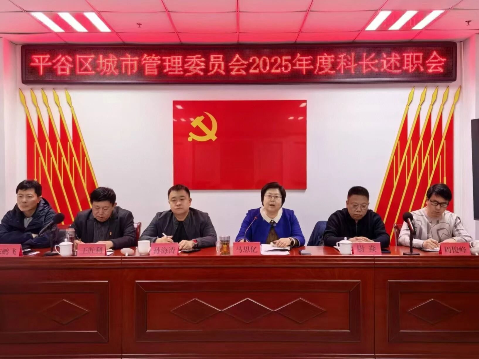 1月26日,平谷区城市管理委召开2025年度科长述职会。会议全面总结年度工作成效,深入查摆短板不足,系统谋划发展思路,各科室负责人依次述职,晒出“成绩单”、亮出“责任状”,以“述”亮绩、以“评”促干,推动城市管理工作提质增效,为建设“高大尚”平谷夯实发展根基。