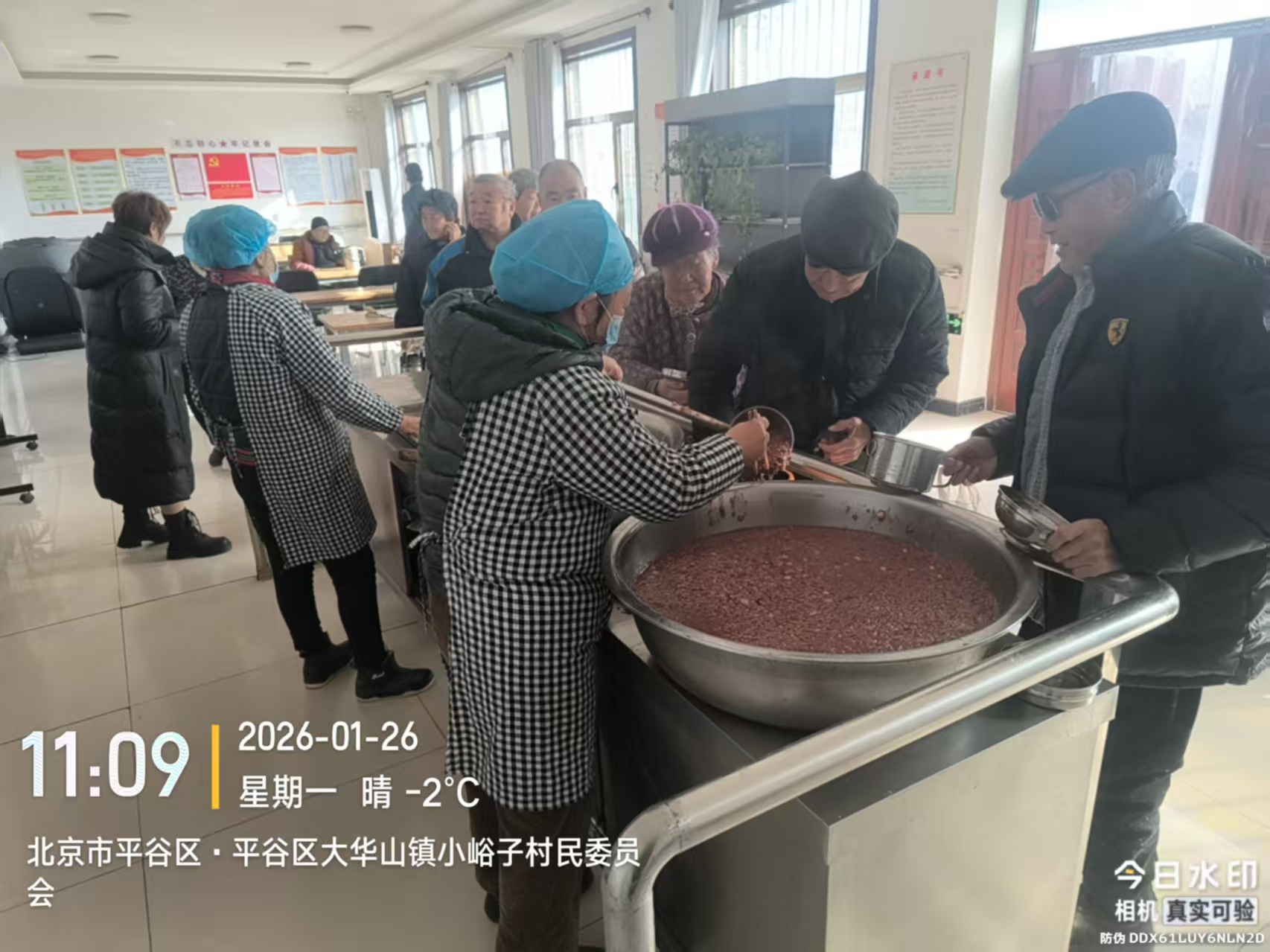 2026年1月26日,正值农历腊八节,平谷区大华山镇小峪子村和泉水峪村等村的互助养老中心内粥香四溢、笑语盈盈。作为养老助残服务的重要阵地,两处互助养老中心以一碗碗精心熬制的腊八粥为载体,将节日的温暖与关怀送至每一位老人手中,更以日常扎实的服务浸润着乡村老年人的幸福晚年。