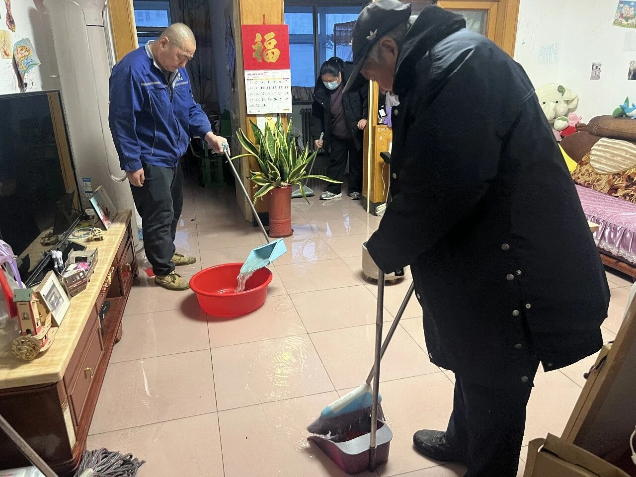 不久后,楼上12号住户赶回家中。打开房门的瞬间,众人发现室内积水已蔓延至客厅及两个卧室。经社区工作人员与维修师傅联合检查,最终确定漏水原因是暖气管道存在沙眼破损。维修师傅立即对破损管道进行修复,快速解决了漏水问题。为避免居民财产损失进一步扩大,社工当即协助住户清理室内积水。经过半个多小时的忙碌,室内积水被彻底清理干净,有效降低了居民的财产损失。事后,楼上楼下住户纷纷向社区工作人员表达了诚挚的感谢。