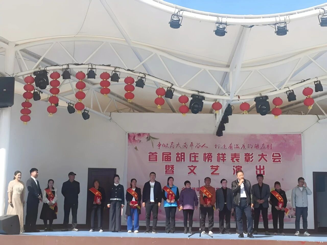 以“百姓大舞台”为纽带,融合精神文明建设与身边典型宣传。2025年3月22日,实践站举办首届“争做高大尚平谷人,打造有温度的胡庄村”榜样表彰大会暨文艺演出,吸引300余名村民参与。活动为志愿服务、孝老爱亲等7类榜样颁奖,以典型引路,引导村民见贤思齐、崇德向善,村内邻里矛盾减少,互帮互助氛围愈发浓厚。