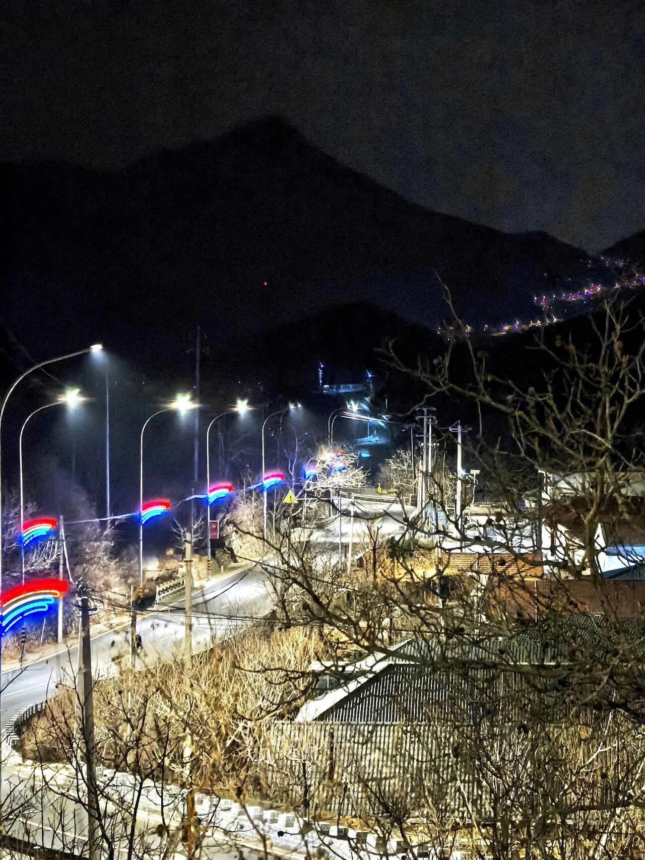 彩虹般的灯光不仅照亮了乡亲的归途