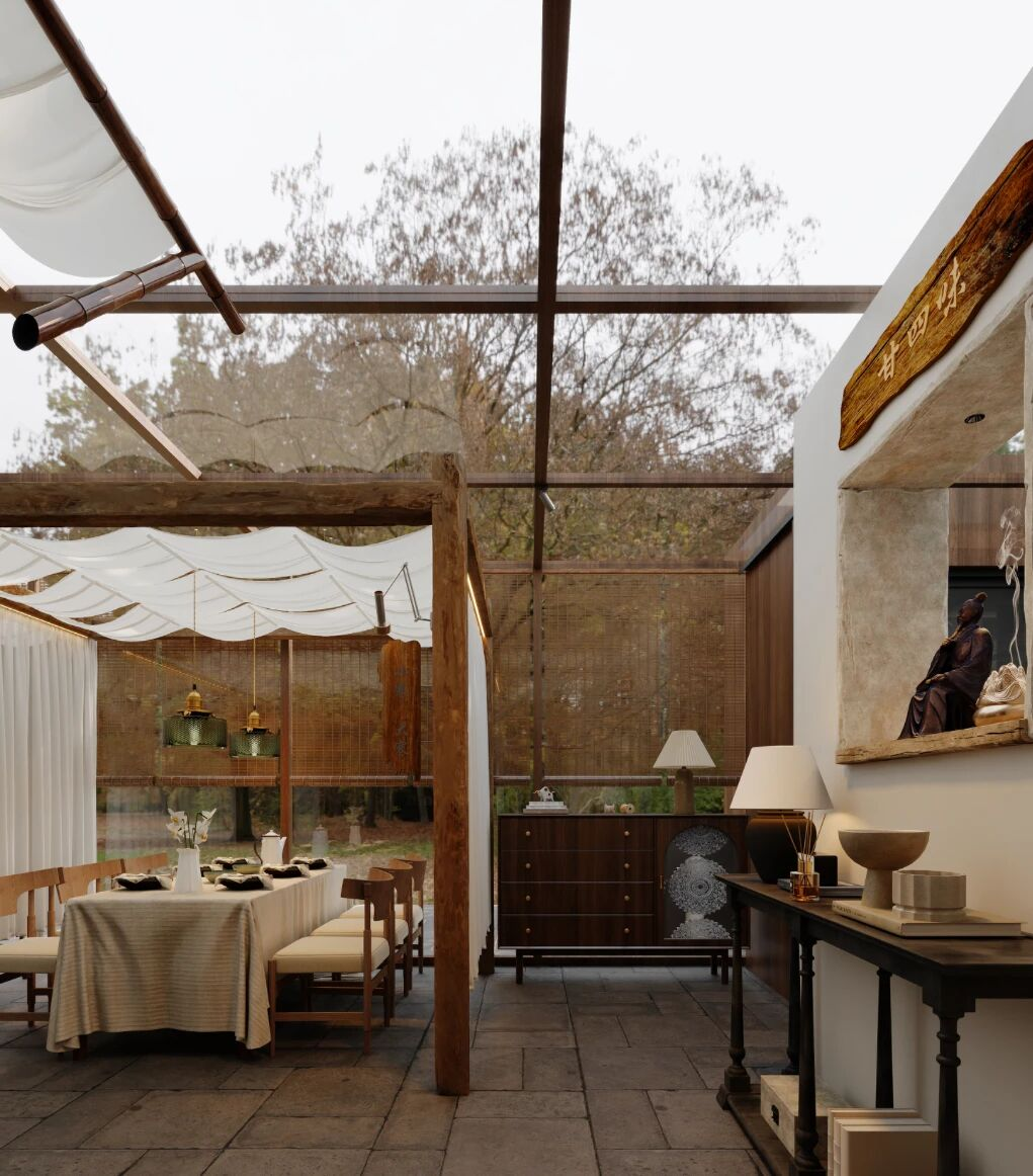 走进餐厅,仿佛踏入都市中的林间秘境。树影婆娑的廊道滤去外界喧嚣,原木桌椅搭配素麻装饰,传递着自然的温润质感;随处可见的四季植物,默默诉说着时令更迭的故事;一隅独立茶寮静雅别致,餐前一杯时令茶,既能让心绪沉淀,更能唤醒味蕾,为后续的美食体验铺垫完美前奏。餐厅以恰到好处的留白设计,弱化多余装饰的干扰,让食物成为真正的主角,让食客能专注感受每一口食材的本真滋味。