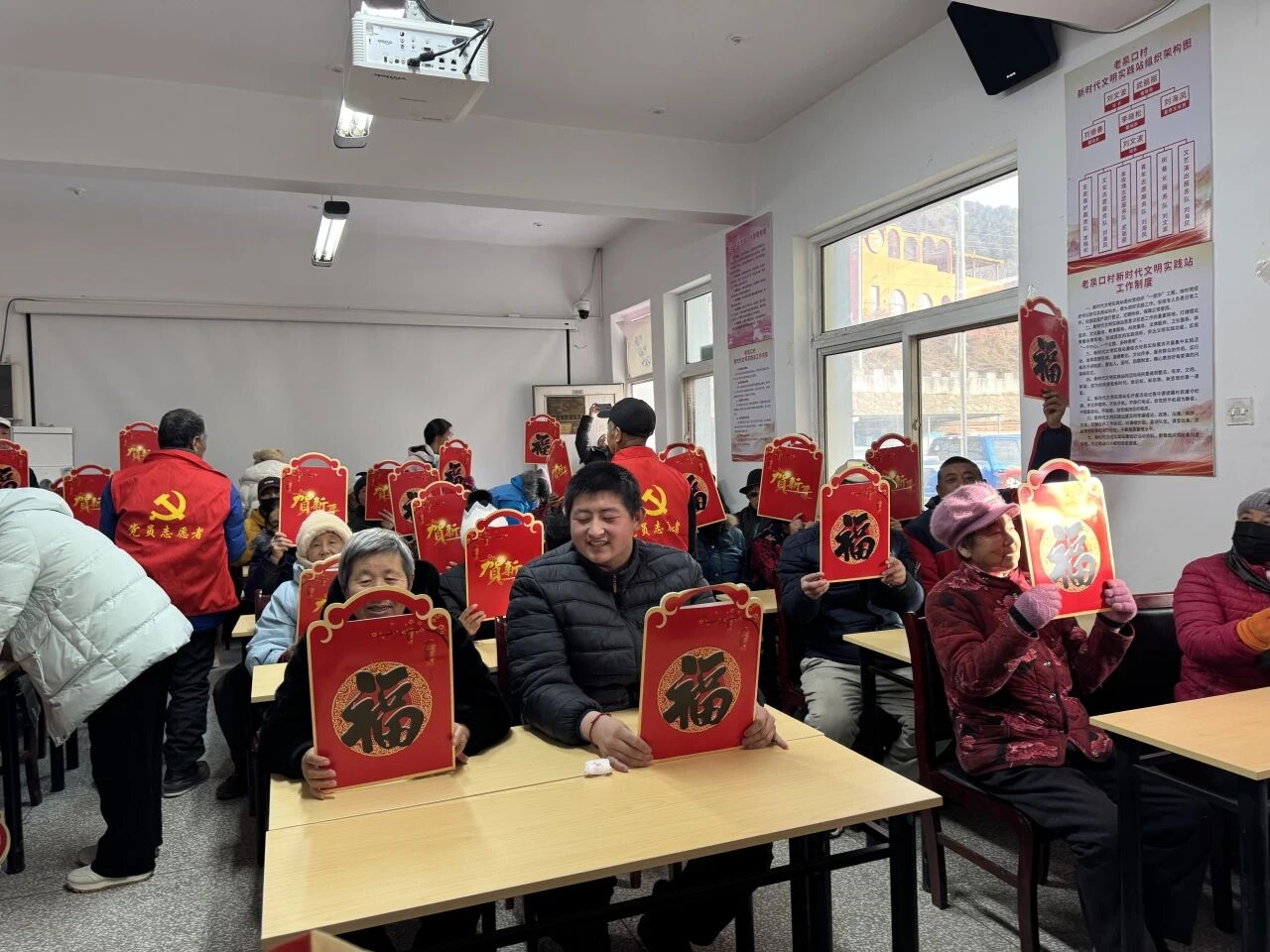 活动在暖意融融的氛围中展开,残疾人朋友们欢聚一堂,党员志愿者们热情地将一副副象征着吉祥如意、满载新春祝福的春联,以及一个个鲜艳喜庆的“福”字,逐一送到大家手中。红彤彤的春联福字映照着张张笑脸,浓浓的年味与温情在室内流淌。