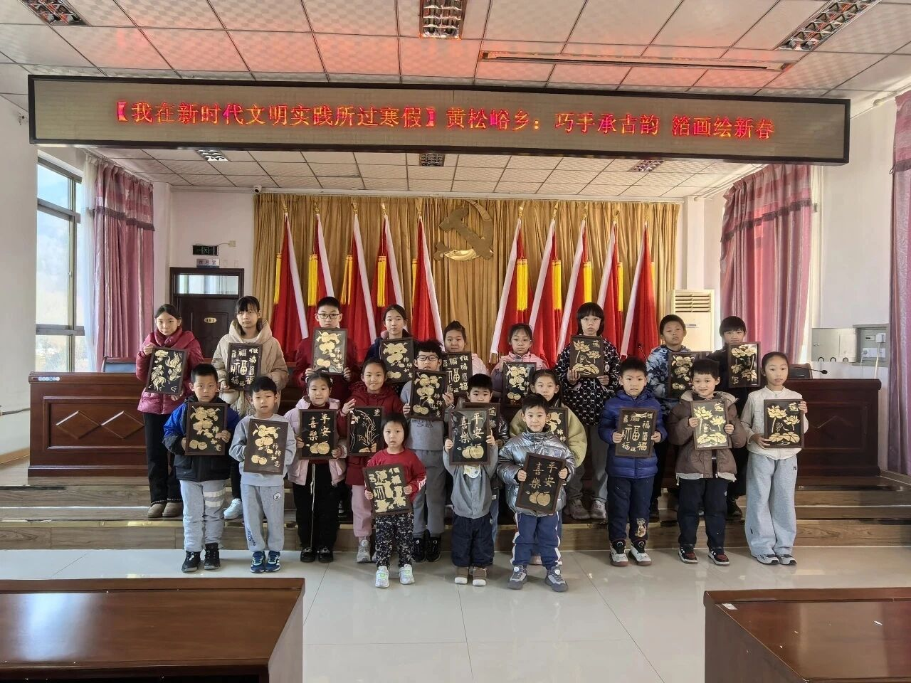 当一层层金箔揭开,金光闪闪的“福”字、灯笼渐次绽放,传统年味与孩子的创意撞了个满怀。“我要把这个送给奶奶!”拿着自己的作品,孩子的眼睛比金箔还亮。这不是简单的手工课,更是文化传承的“种子课”。当乡村娃的指尖触碰到千年非遗技艺,“传统文化”就从书本里的文字,变成了能带走、能分享的温暖礼物。