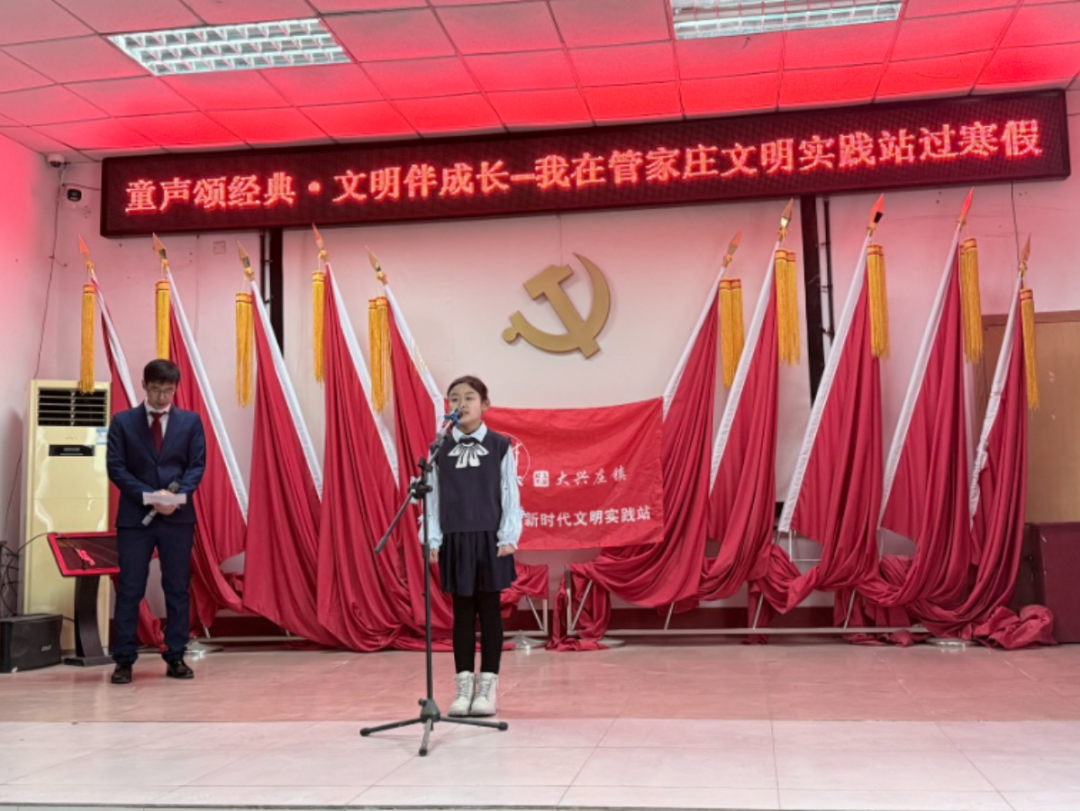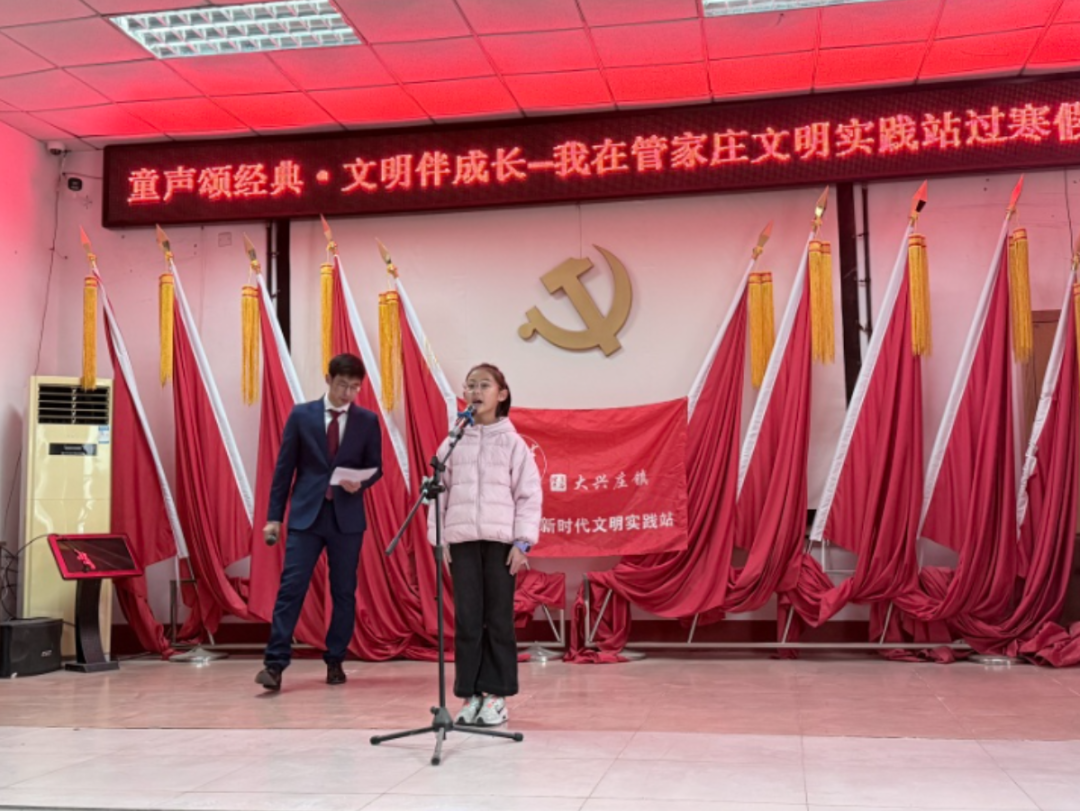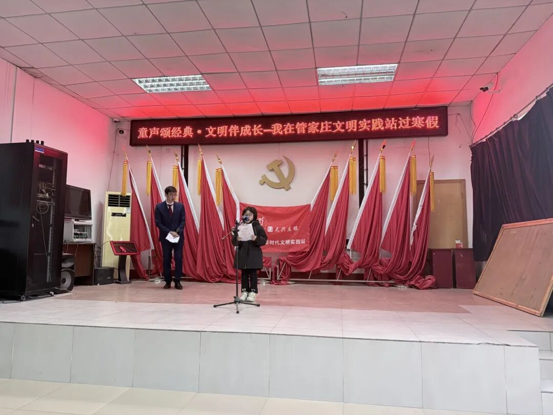 为丰富少年儿童寒假假期文化生活,传承中华优秀诗词文化,展现当代少年儿童风采,1月30日,管家庄村新时代文明实践站举办“童声诵经典 文明伴成长”少儿诗朗诵比赛。活动吸引了众多家长与孩子积极参与,现场洋溢着诗意与童声交织的温馨氛围。