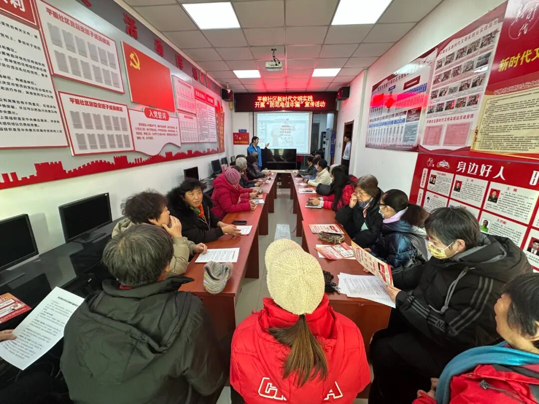 府前社区、平粮社区开展节前反诈知识宣传活动,联合辖区民警、志愿者通过播放宣传短片、讲述真实案例等方式,向居民讲解春节期间高发电信网络诈骗手段及识骗防骗技巧,提醒居民提高警惕、防范诈骗,切实筑牢辖区春节反诈安全防线,为居民平安祥和过节保驾护航。
