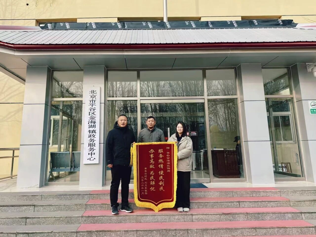 近日,黄草洼村村民刘先生专程前往金海湖镇政务服务中心,将一面印着“服务热情 便民利民 办事高效 为民解忧”的锦旗郑重地送到副镇长于海新和镇社保所工作人员手中,以最朴素的方式,表达对社保所工作人员高效履职、贴心服务的衷心感谢,也为政务服务工作注入了温暖的动力。