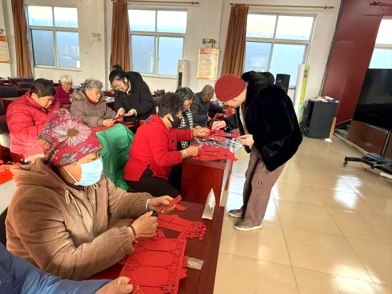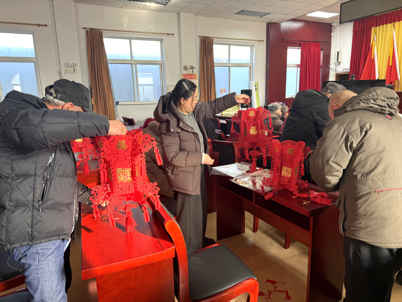 活动现场气氛热烈,村民们齐聚一堂,在工作人员的指导下,一步步动手裁剪、拼接、装饰,制作出一个个色彩鲜艳、造型别致的红灯笼。大家相互交流技巧,彼此帮助协作,过程中笑语不断,年味浓浓。活动不仅让村民亲身体验了手工创作的乐趣,更在互动中深化了邻里情谊,增强了社区凝聚力。