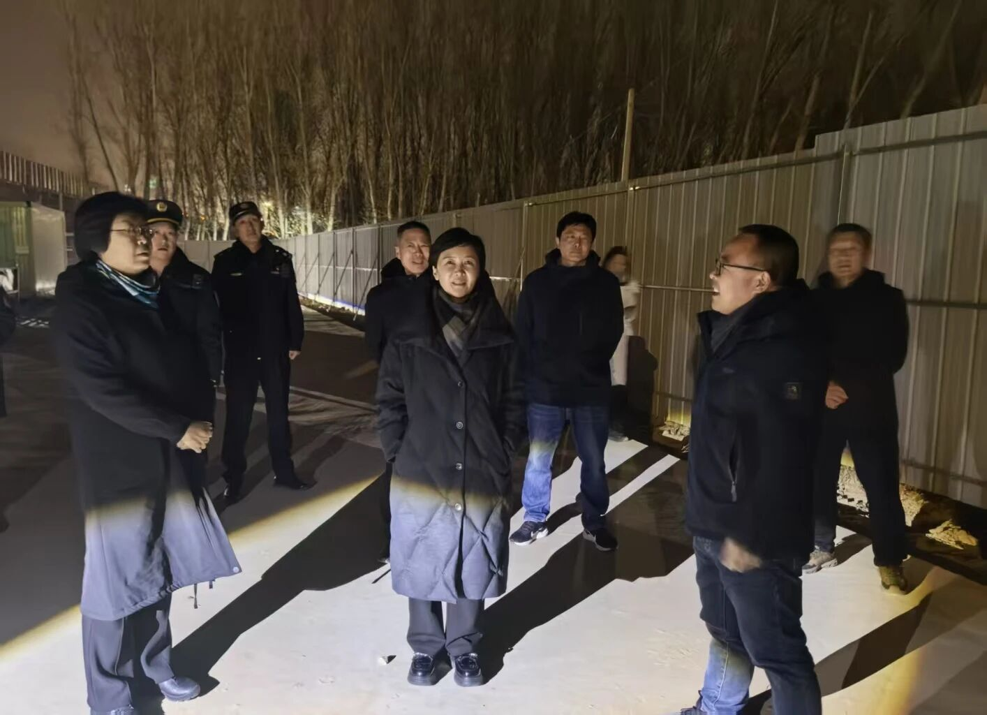 2月3日晚间,区委常委、区纪委书记于建波带队,区城市管理委、东高村镇政府等相关单位工作人员共15人组成联合检查组,聚焦东高村镇域道路尘负荷治理核心任务,开展专项夜查行动。此次检查以鲍家庄检查站施工工地为重点核查对象,围绕土方苫盖是否全面到位、降尘设施是否正常运行、周边道路保洁是否达标、车轮清洗是否规范彻底等关键环节,进行全方位、无死角的实地排查,确保防尘措施不打折扣、落地见效。