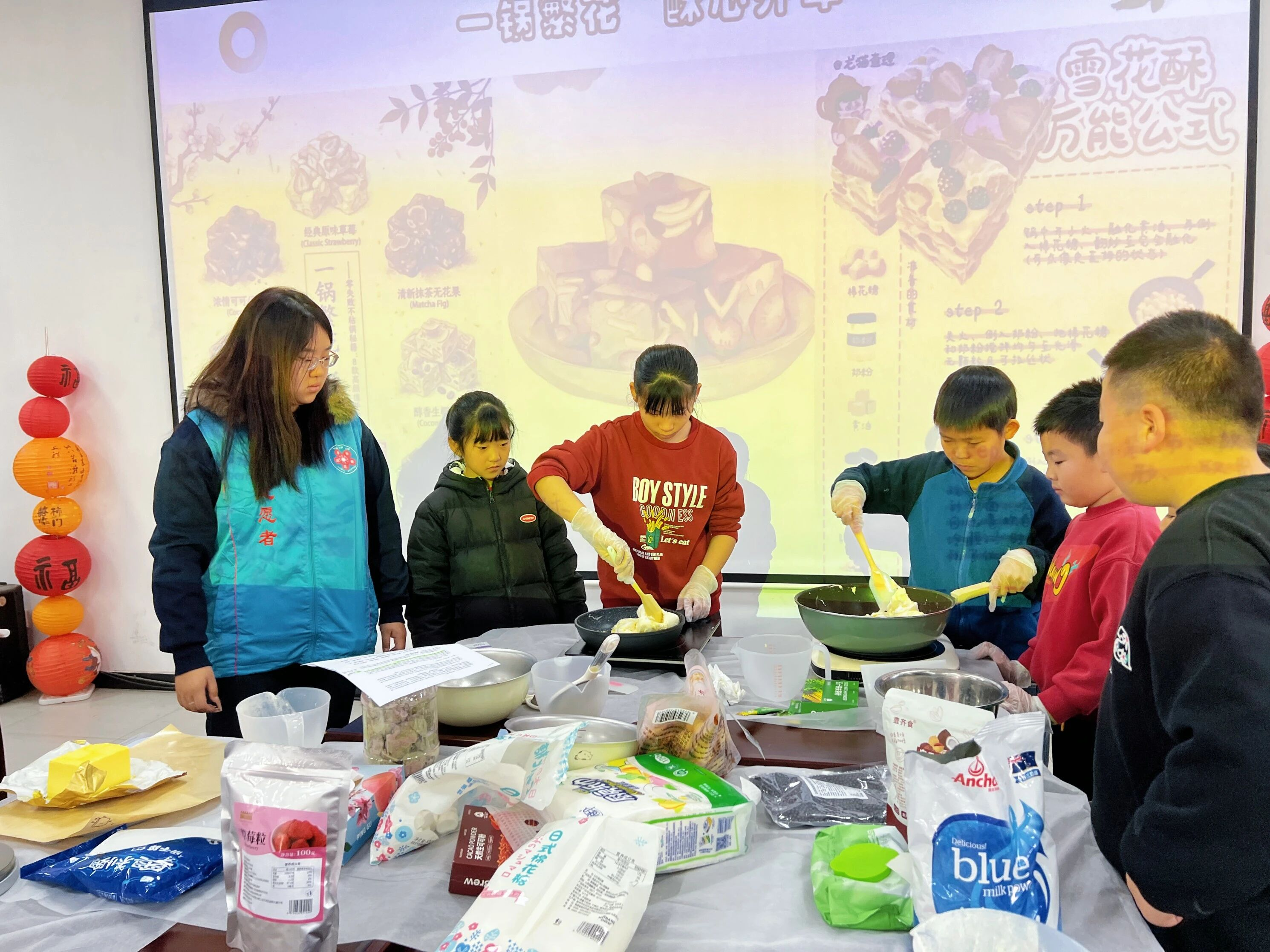 继2月2日第二堂课温情落幕之后,2月3日,刘家店镇“桃乡益路行——寒假公益半日课堂”第三课如期开讲,结合马年新春氛围,解锁手工甜蜜乐趣,推出“小马甜甜——雪花酥自制烘焙课”,让孩子们在寒假公益时光里,亲手制作美味,感受温暖,喜迎马年新春。